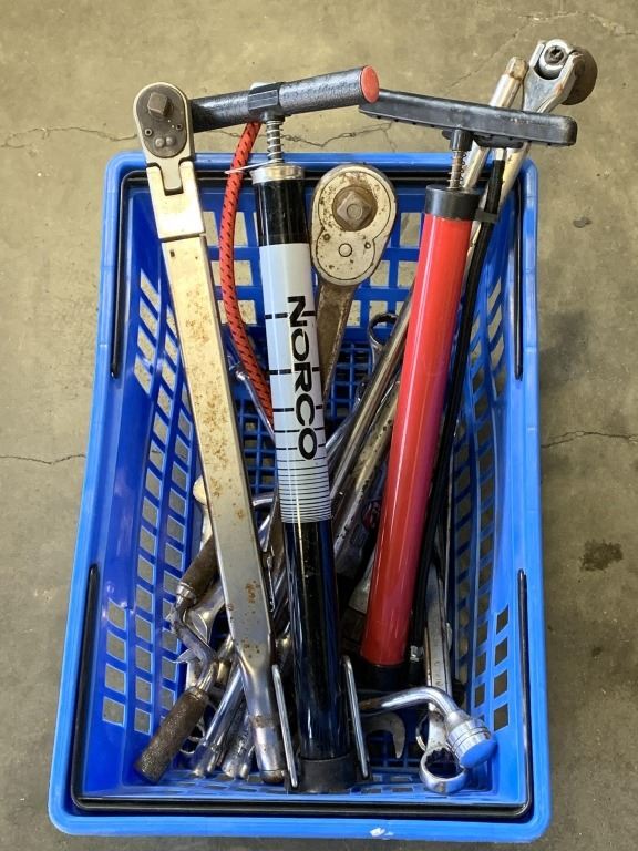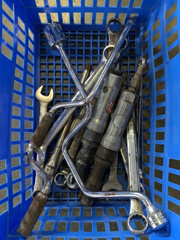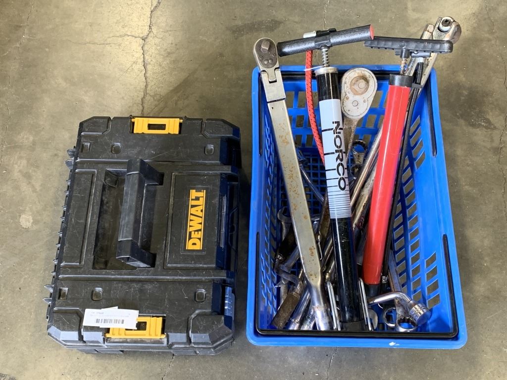 BASKET OF TORQUE WRENCHES AND AIR TOOLS AND DEWALT HARD CASE