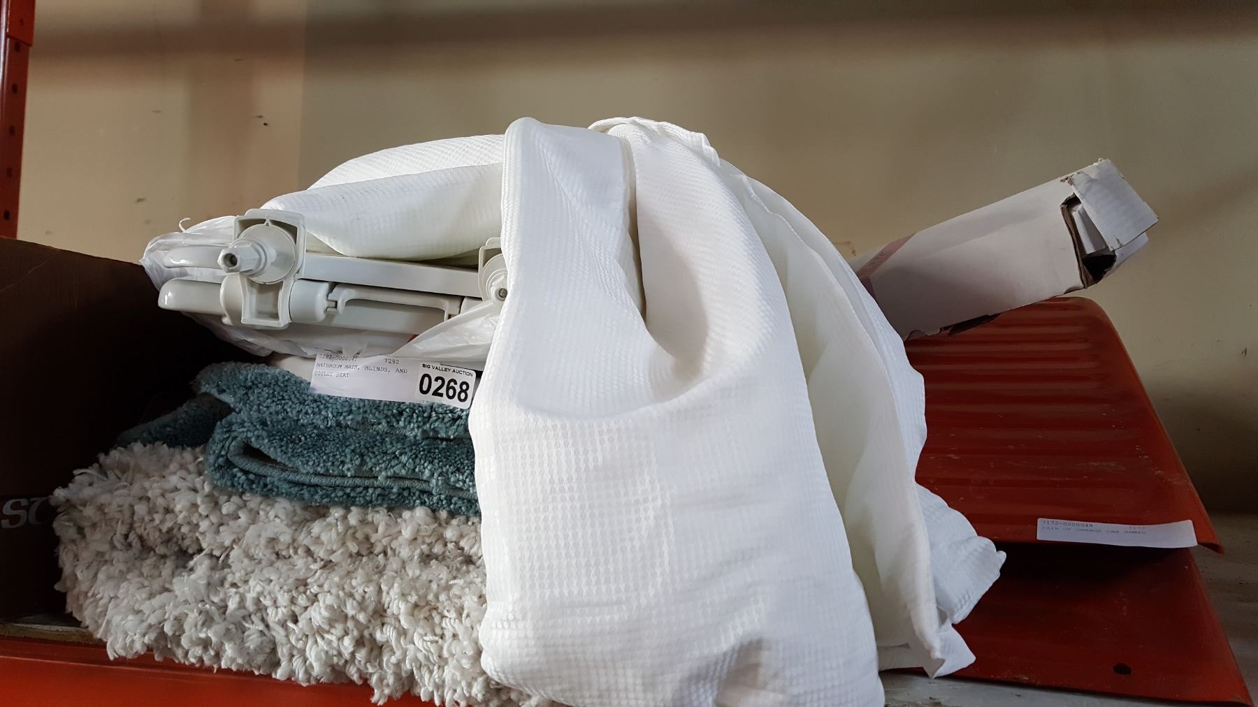 BATHROOM MATS, BLINDS, AND TOILET SEAT