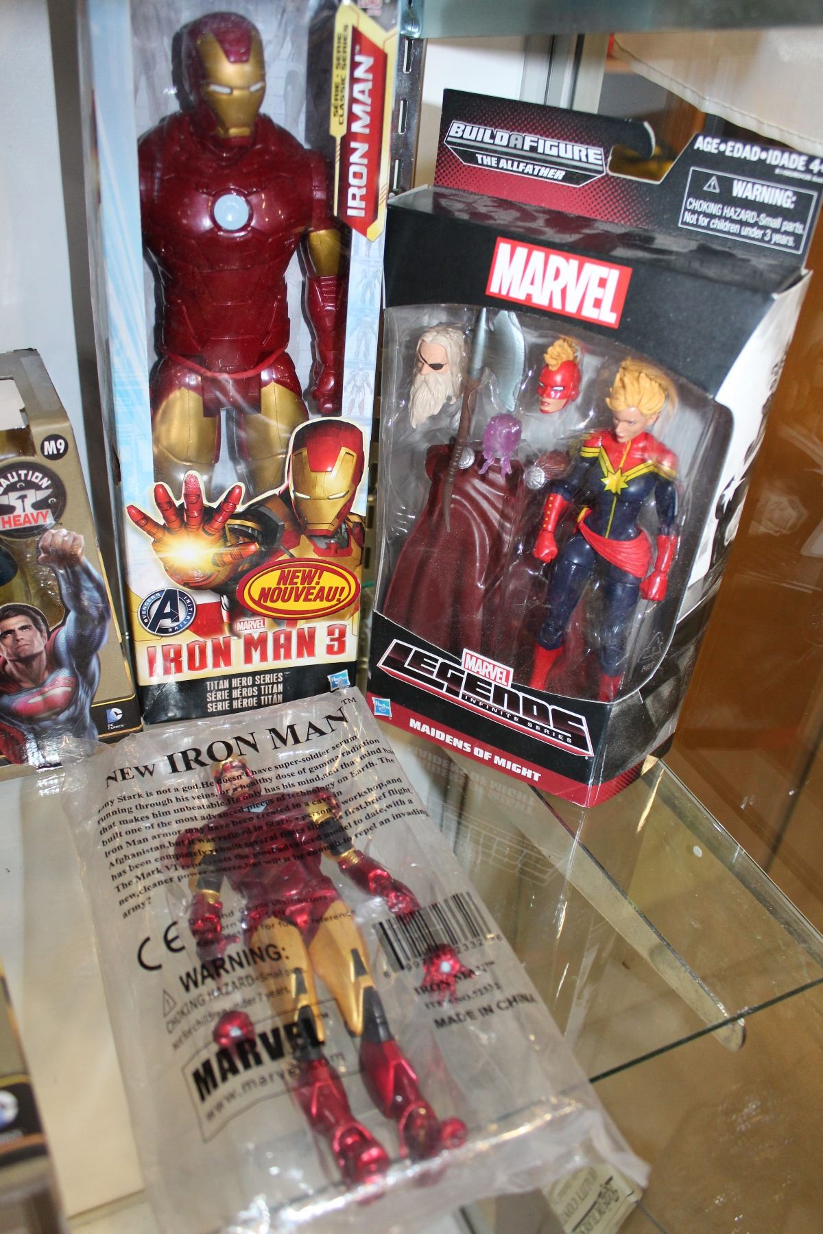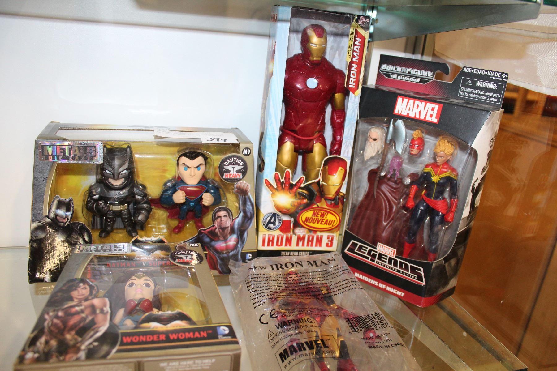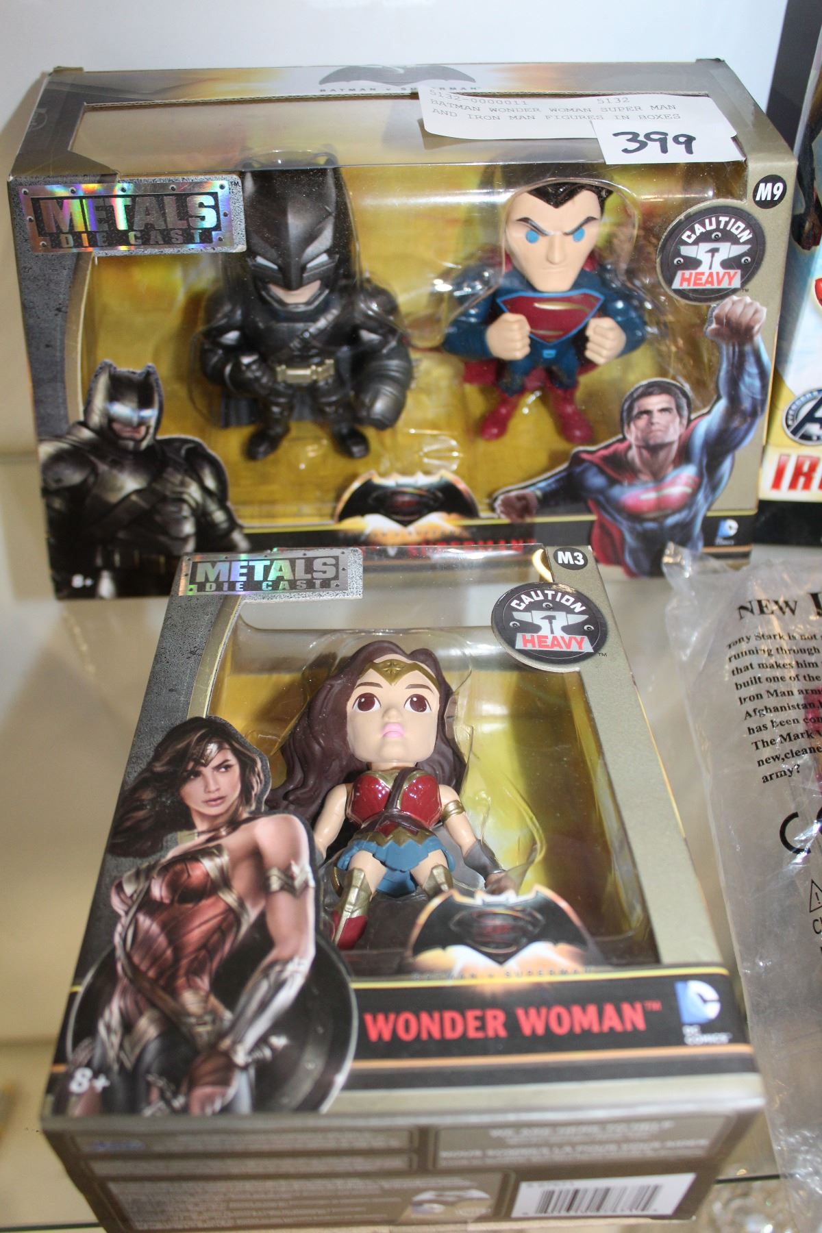 BATMAN WONDER WOMAN SUPER MAN AND IRON MAN FIGURES IN BOXES