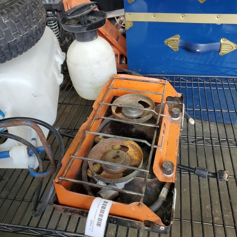 BE BACKPACK SPRAYER, ZEBCO TRAVELER CAMP STOVE, 2 CART / DOLLY WHEELS