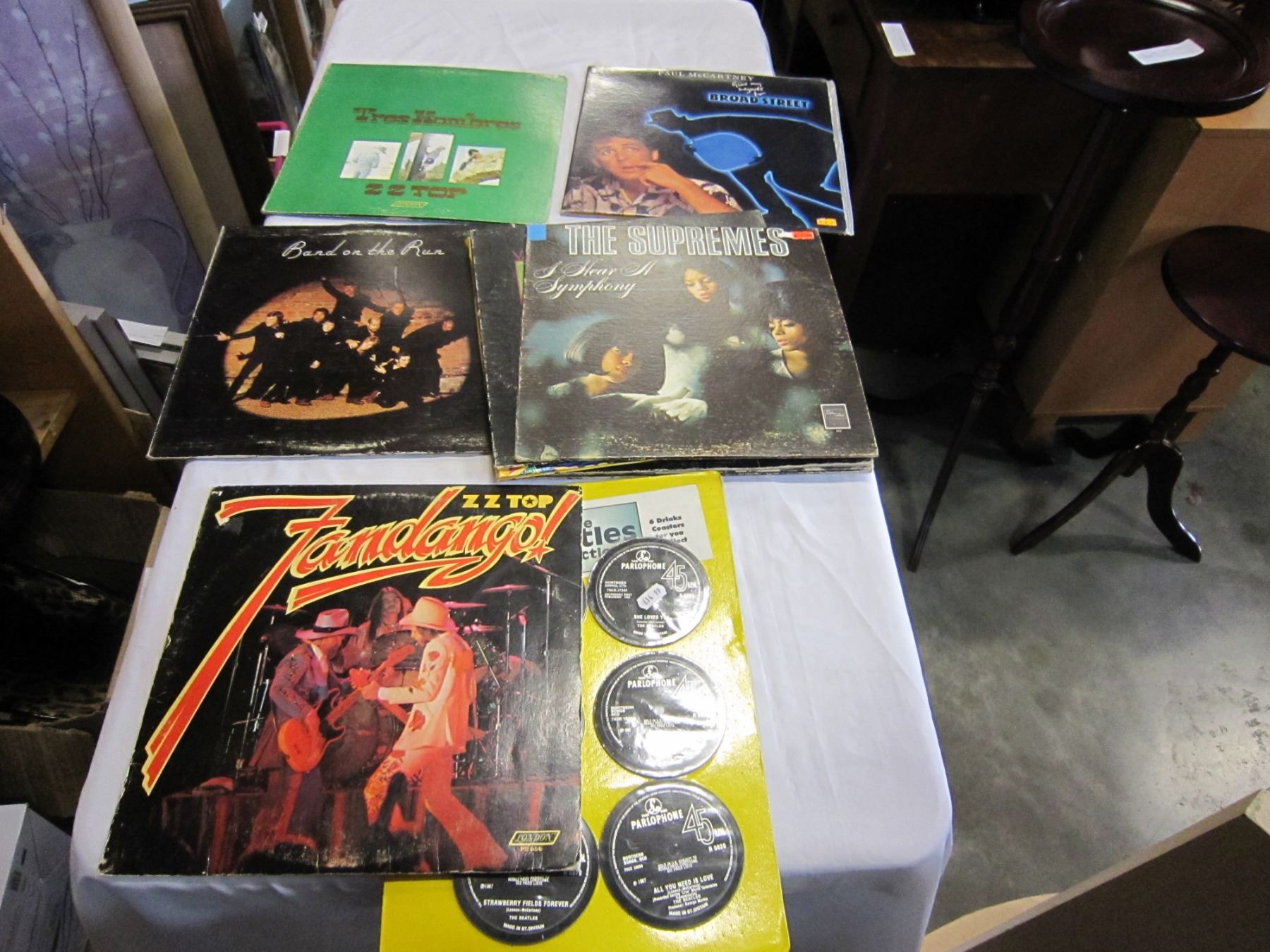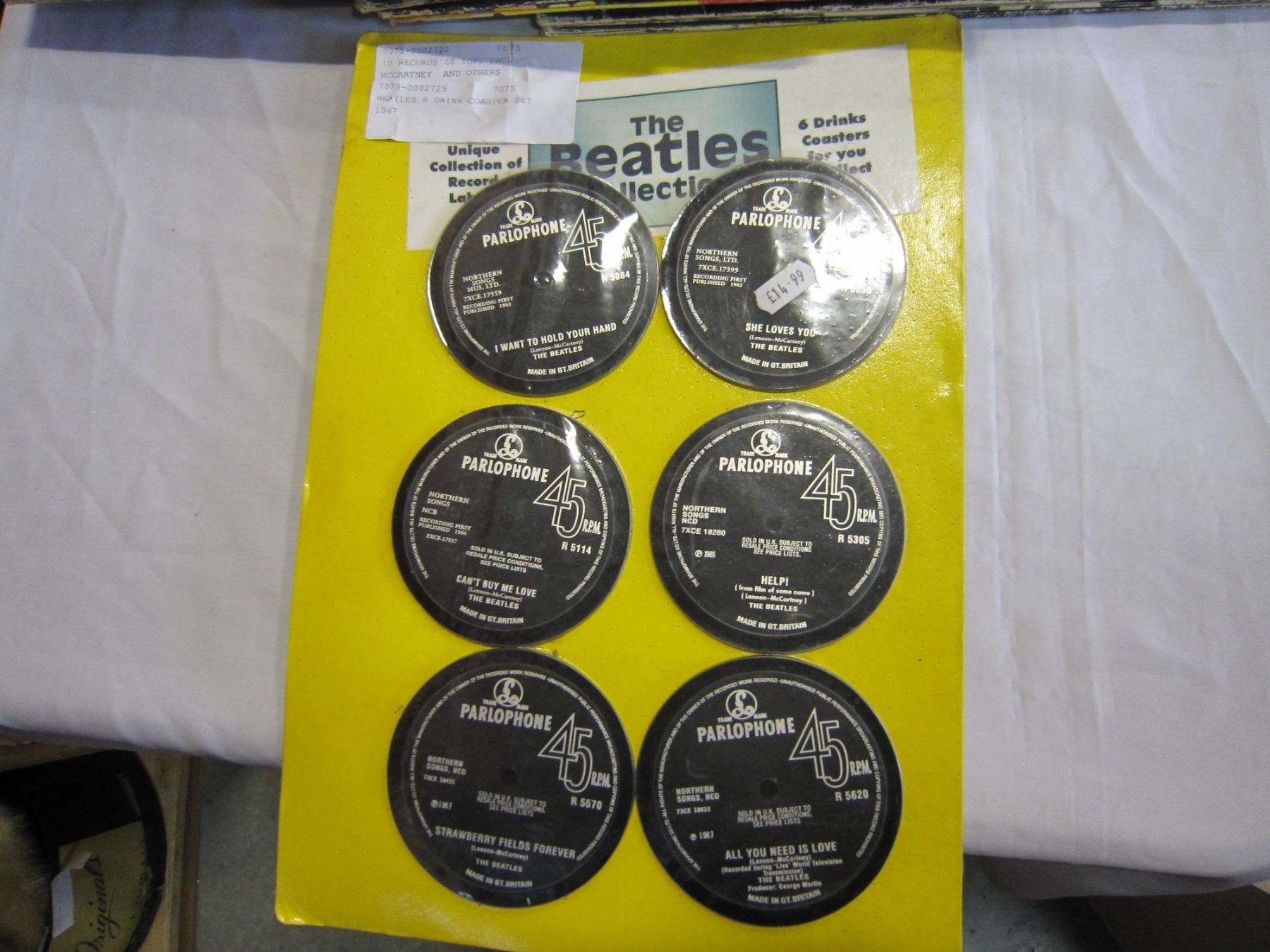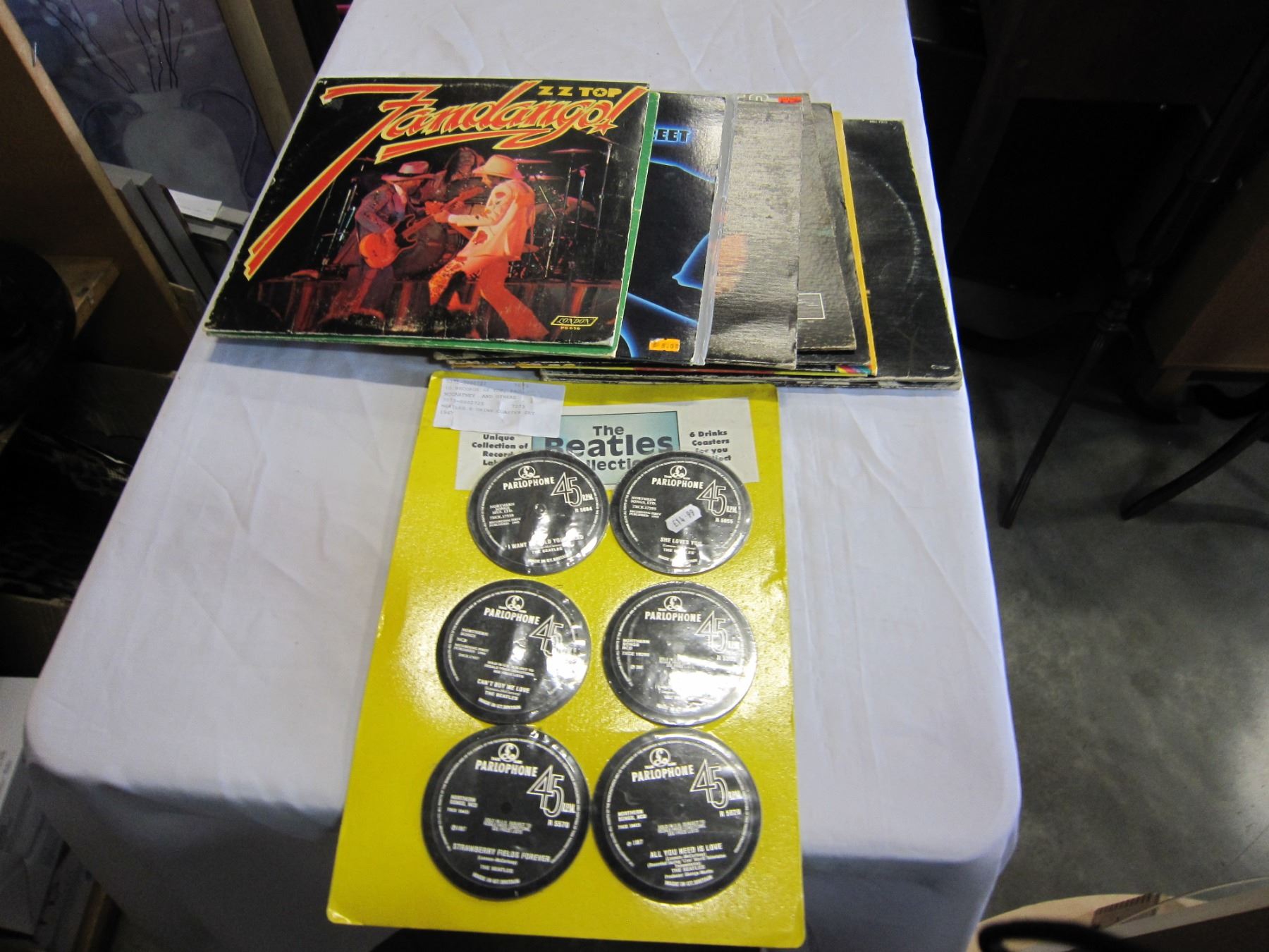 BEATLES 6 DRINK COASTER SET 1967 AND 10 RECORDS ZZ TOP, PAUL MCCARTNEY AND OTHERS