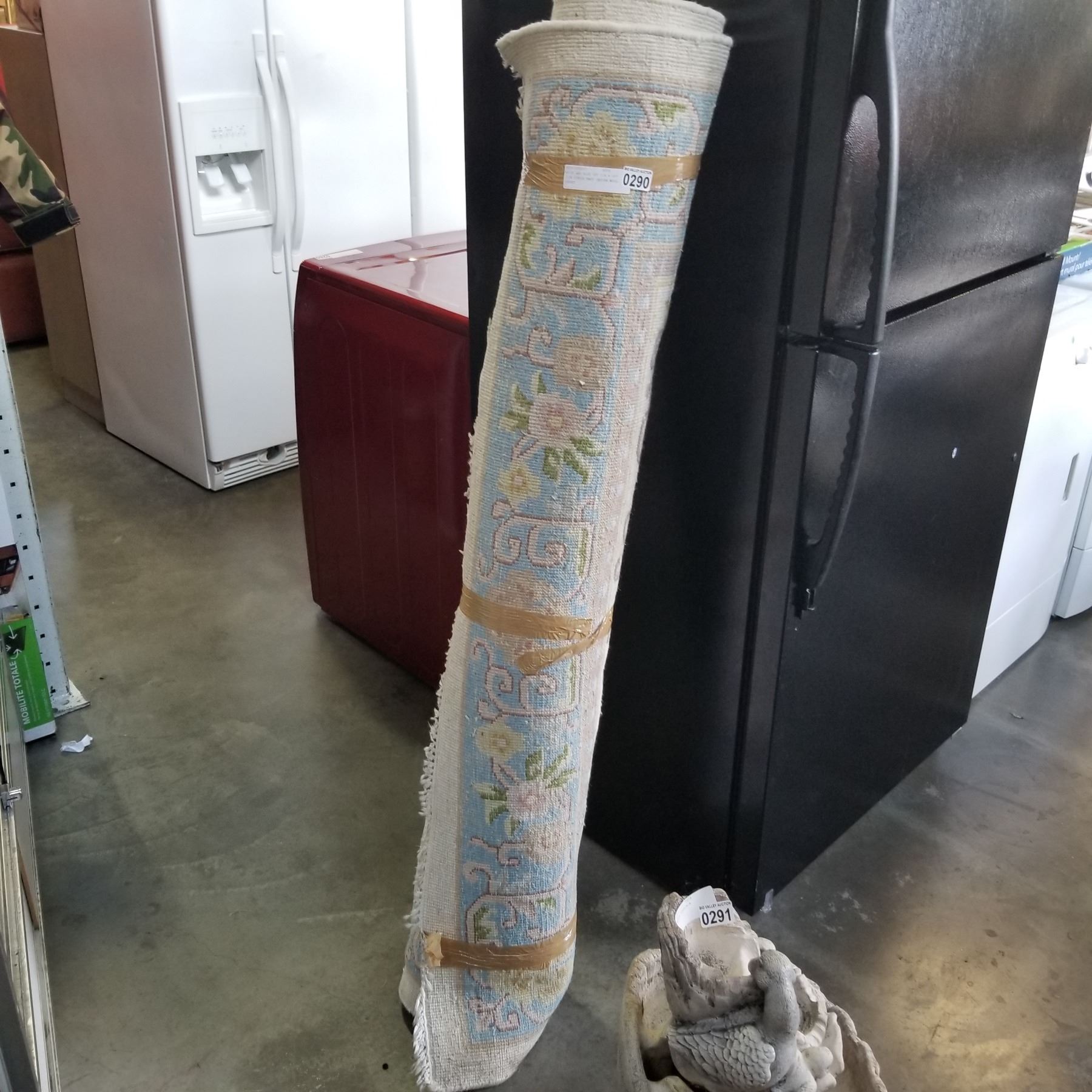 BEIGE AND BLUE 5FT 2IN x 8FT 11IN SINGLE KNOT INDIAN WOOL CARPET