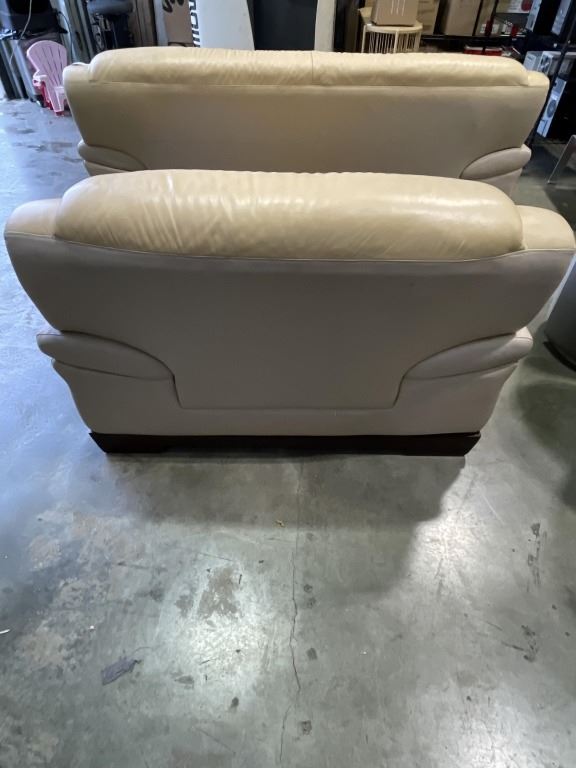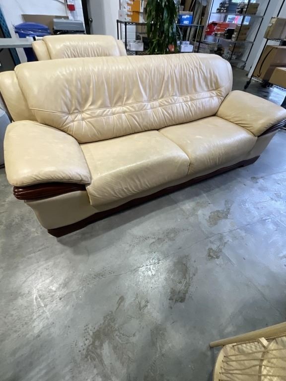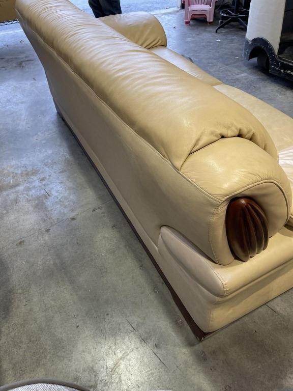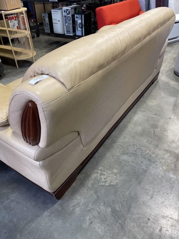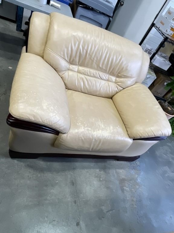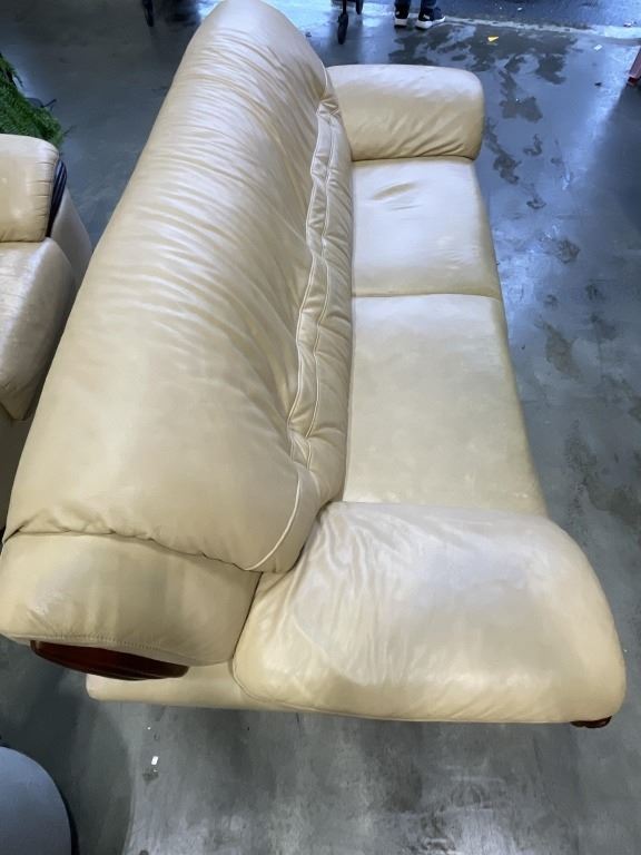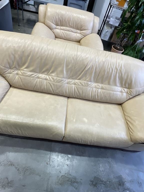 BEIGE LEATHER SOFA AND OVERSIZED CHAIR