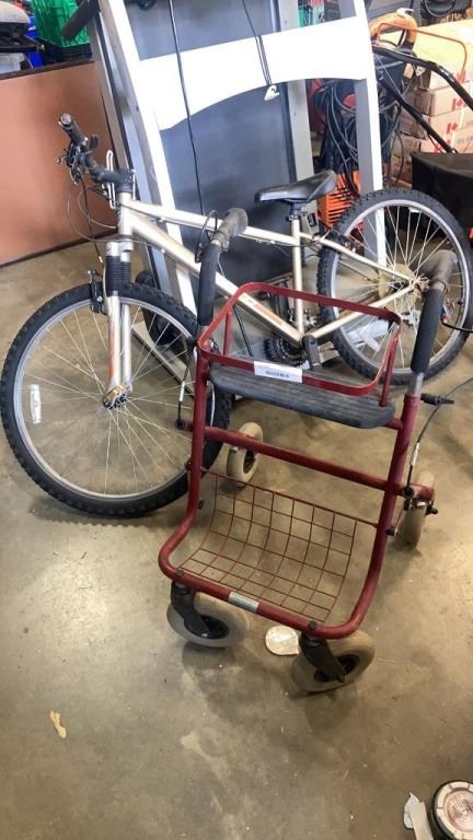 BEIGE NORCO BIKE AND FOLDING WALKER