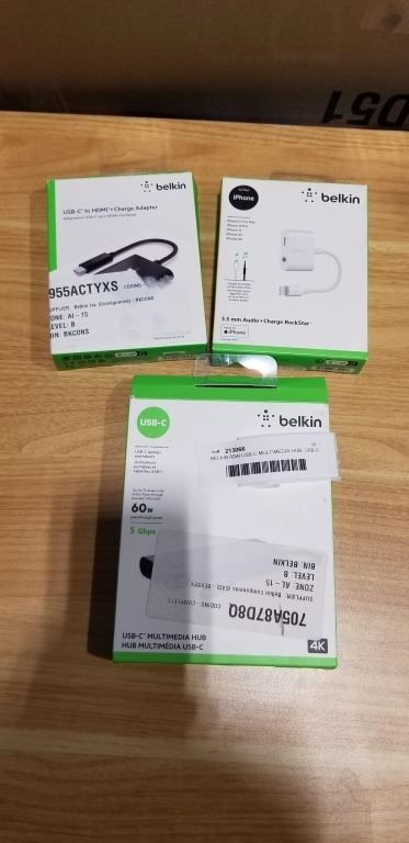 BELKIN 60W USB-C MULTIMEDIA HUB, USB-C TO ETHERNET PLUS CHARGE ADAPTER AND AUDIO AND CHARGER FOR IPHONE