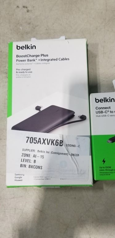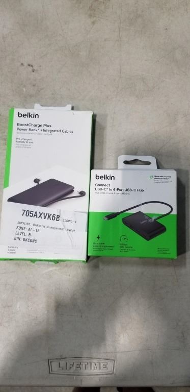 BELKIN BOOSTCHARGE PLUS POWER BANK AND INTEGRATED CABLES, AND BELKIN CONNECT USB-C TO 4 PORT USB-C HUB