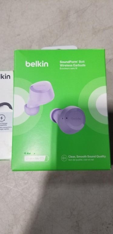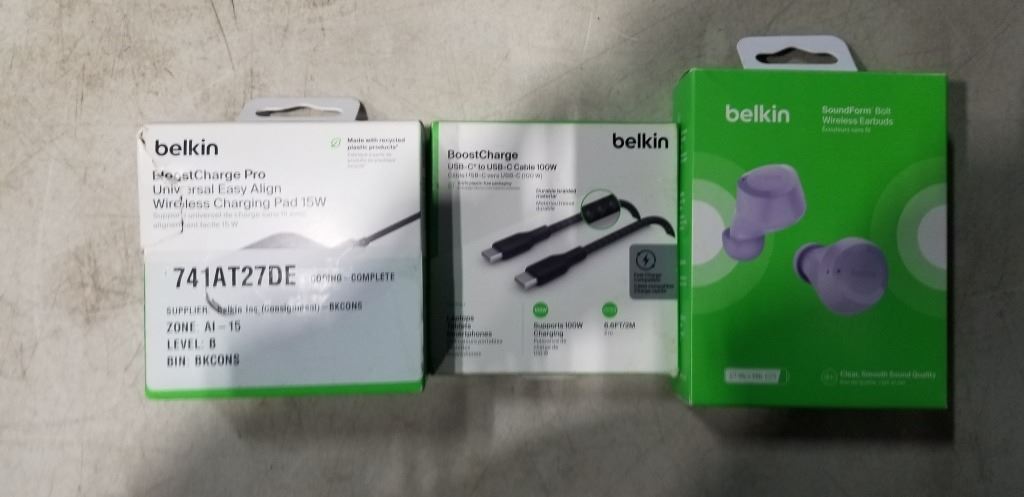 BELKIN SOUNDFORM FLO NOISE CANCELLING EARBUDS , BELKIN BOOSTCHARGE PRO UNIVERSAL EASY ALIGN WIRELESS CHARGIN PAD 15W AND BELKIN USB-C TO USB-C CABLE 100W