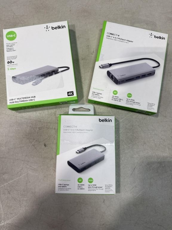 BELKIN USB-C MULTIMEDIA HUB, 6 IN 1 MULTI PORT ADAPTER AND 4 IN 1 ADAPTER