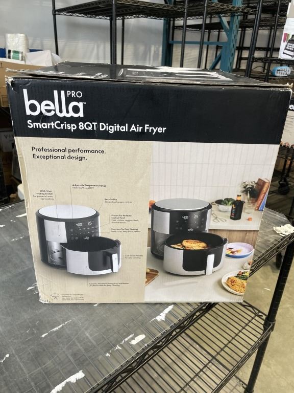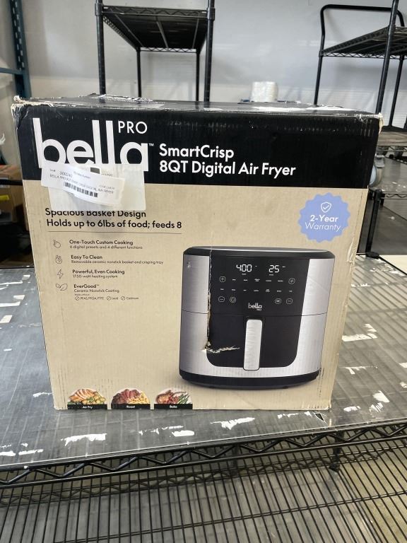 BELLA PRO 8QT SMART CRISP DIGITAL AIR FRYER W/ EVERGOOD CERAMIC - TESTED WORKING, RETAIL $159