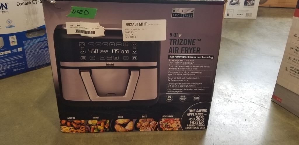 BELLA PRO 9QT FLEX ZONE TOUCHSCREEN AIR FRYER - TESTED WORKING, RETAIL $349