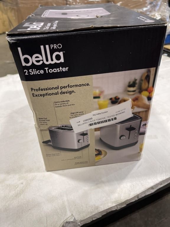 BELLAPRO 2 SLICE TOASTER - TESTED WORKING