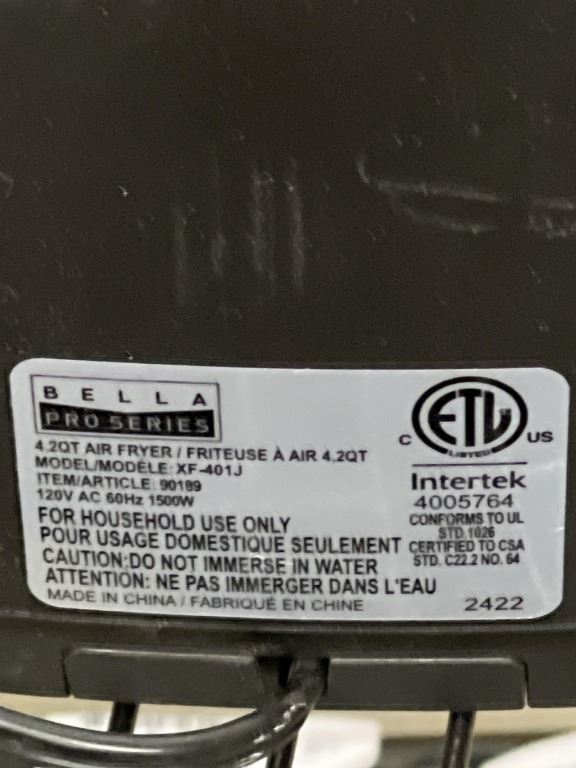 BELLAPRO 4QT AIR FRYER - TESTED WORKING, RETAIL $199