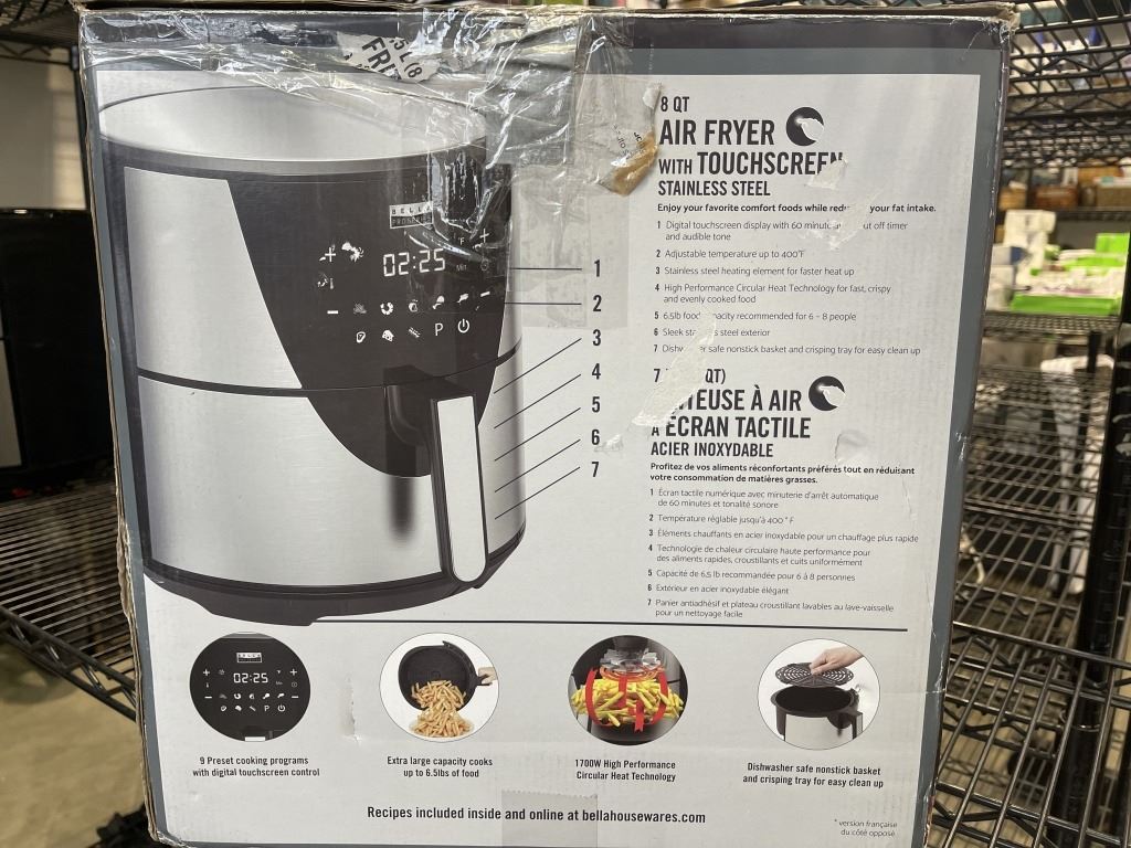 BELLAPRO 8QT TOUCHSCREEN AIR FRYER - TESTED WORKING, RETAIL $199