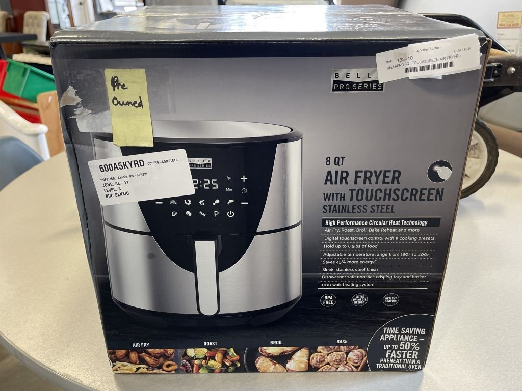 BELLAPRO 8QT TOUCHSCREEN AIR FRYER - TESTED WORKING, RETAIL $239