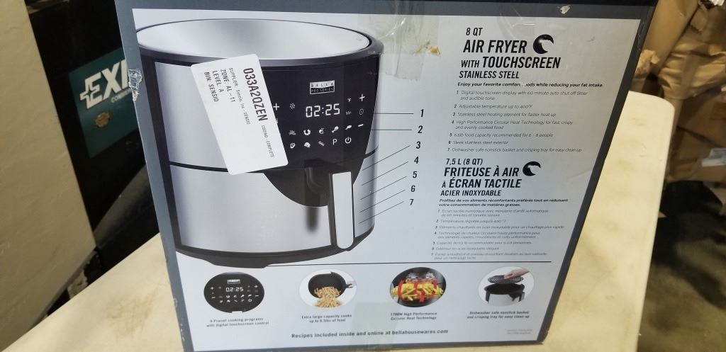 BELLAPRO 8QT TOUCHSCREEN AIR FRYER - TESTED WORKING, RETAIL $249