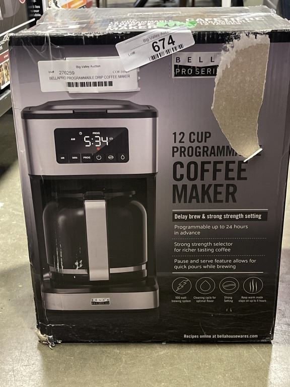 BELLAPRO PROGRAMMABLE DRIP COFFEE MAKER - 12-CUP - TESTED WORKING, RETAIL $99