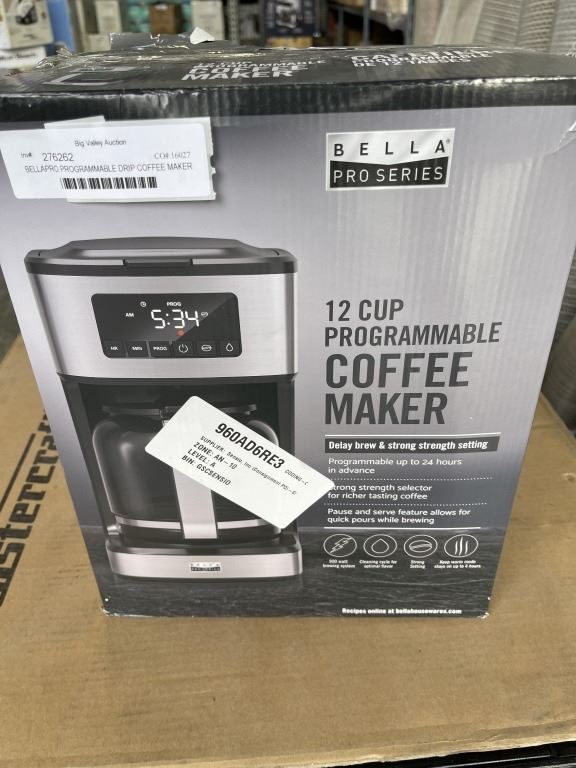 BELLAPRO PROGRAMMABLE DRIP COFFEE MAKER - 12-CUP - TESTED WORKING, RETAIL $99