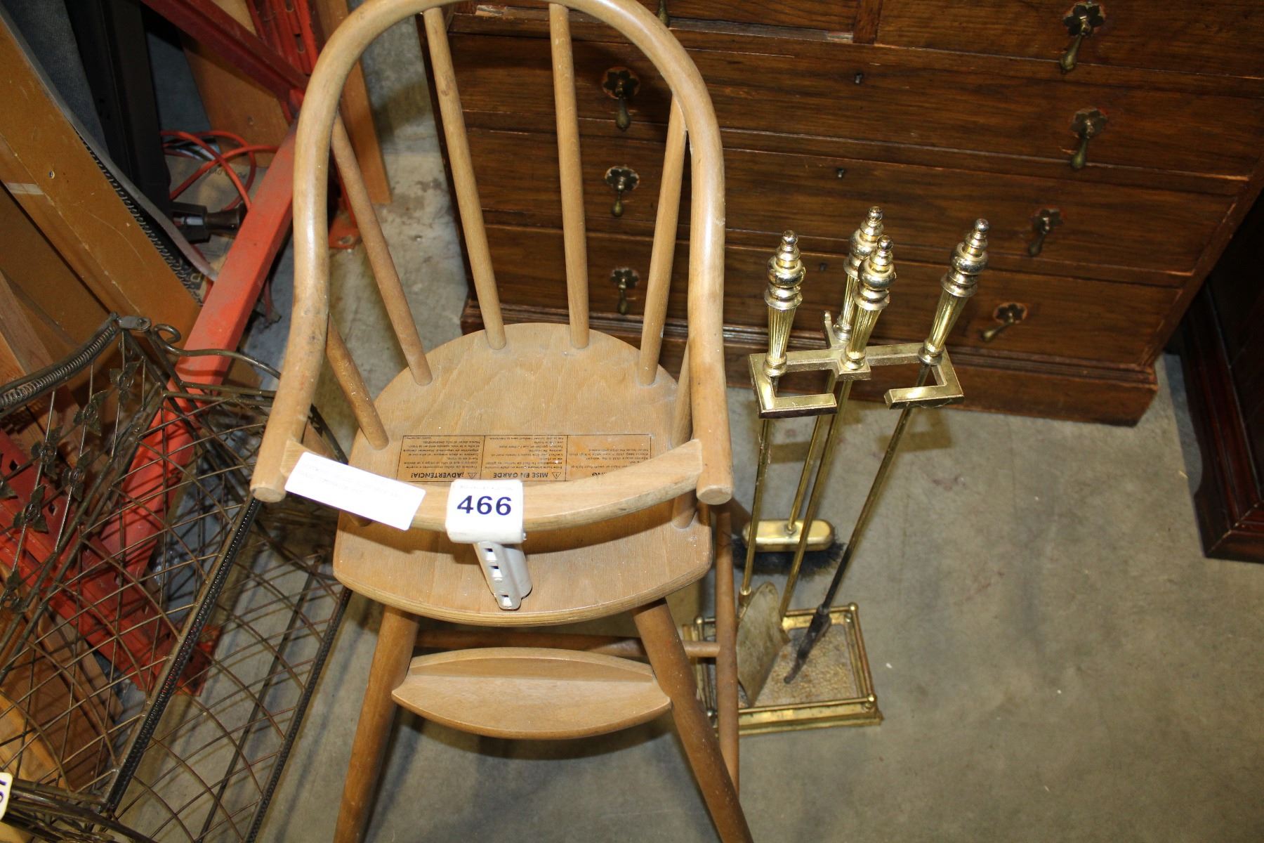 BENTWOOD CHILDS HIGHCHAIR AND BRASS COMPANION SET