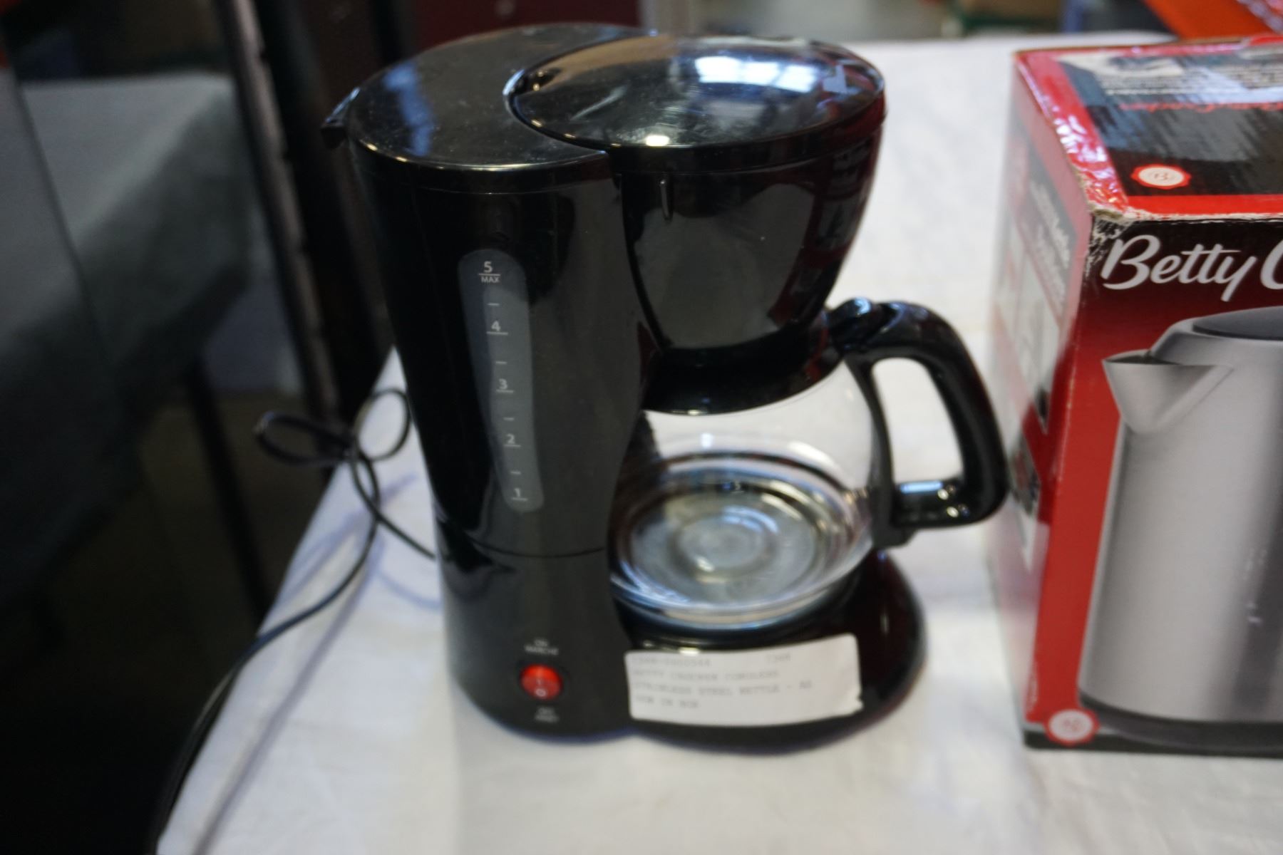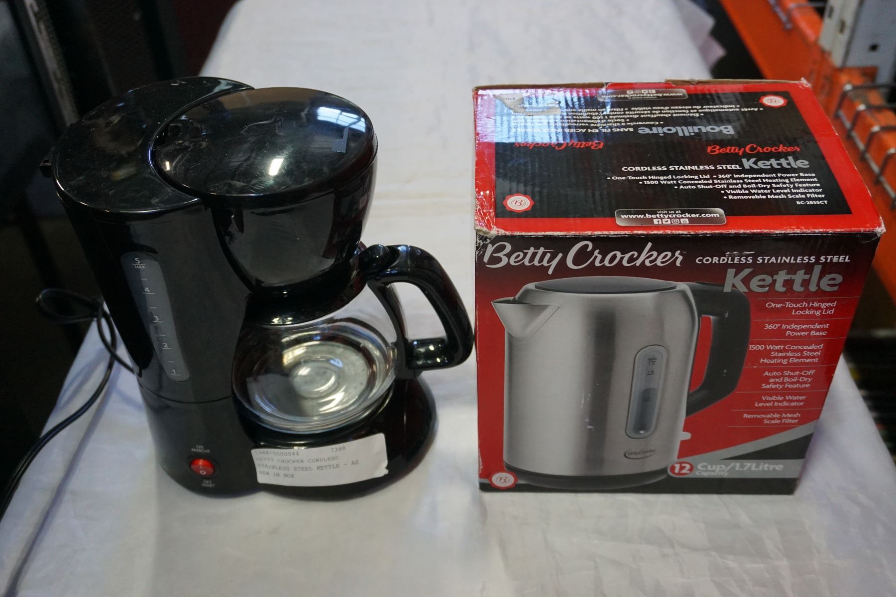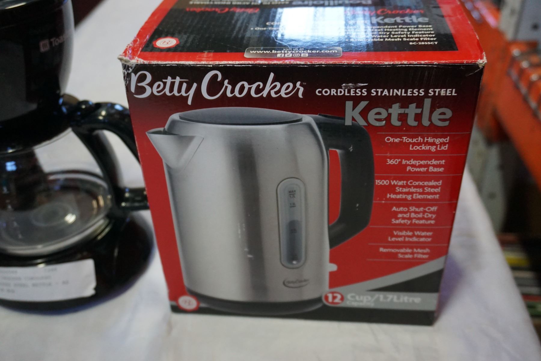 BETTY CROCKER CORDLESS STAINLESS STEEL KETTLE - AS NEW IN BOX AND COFFEE MAKER