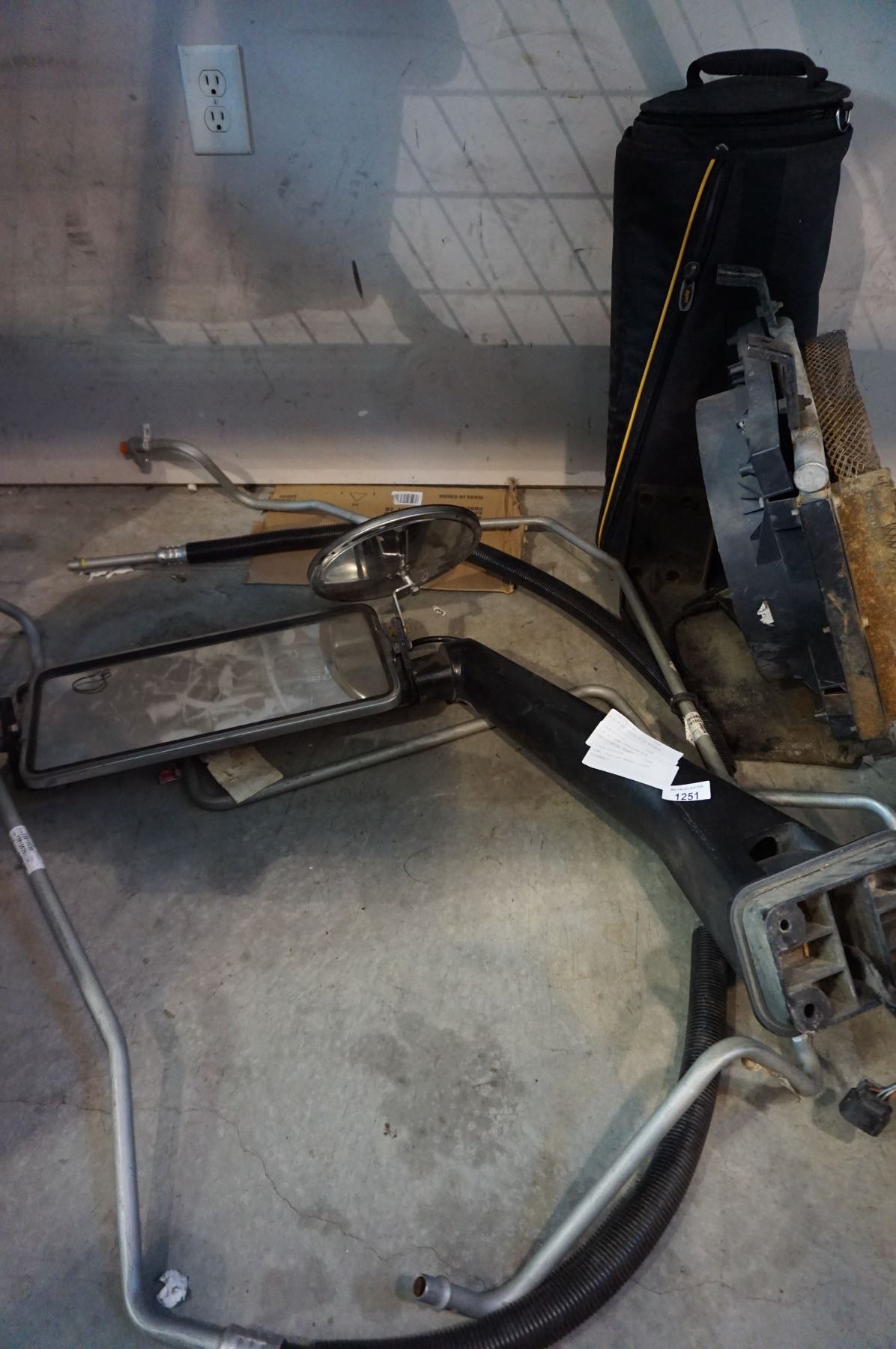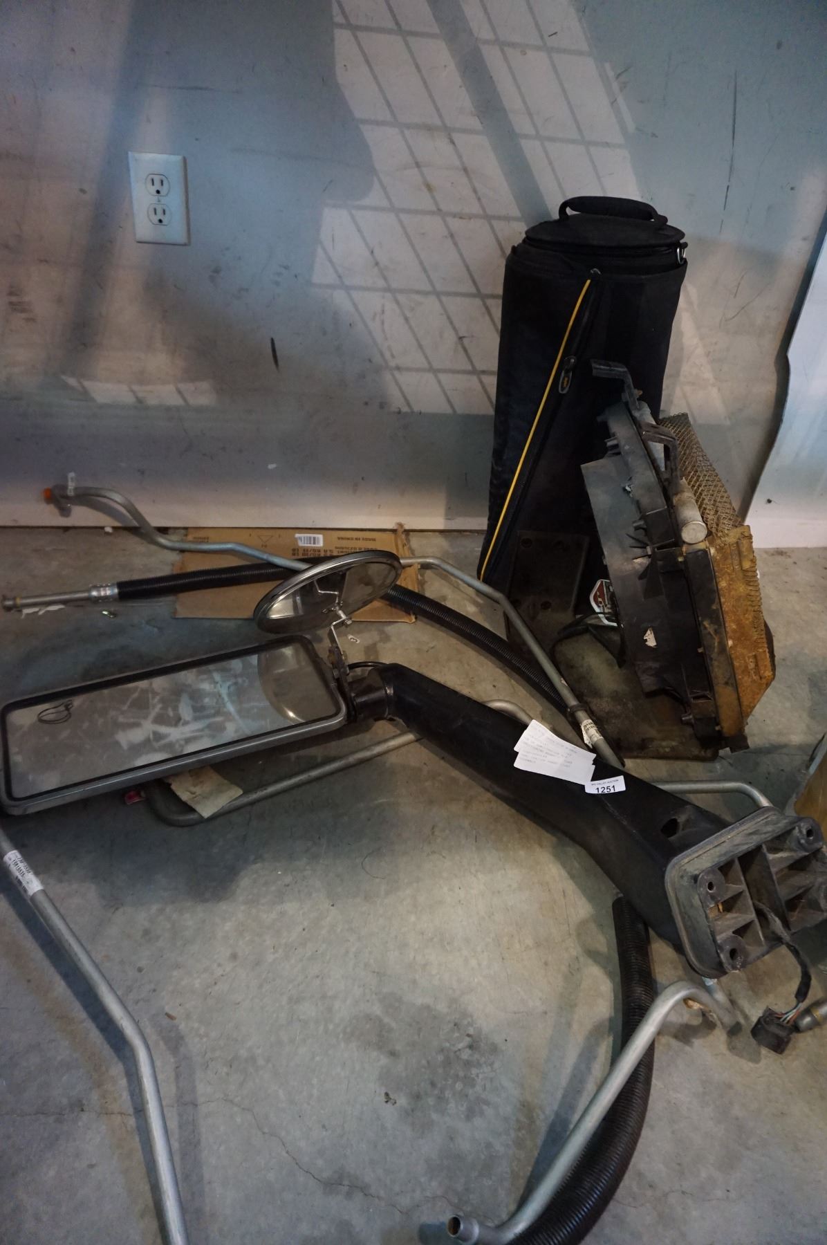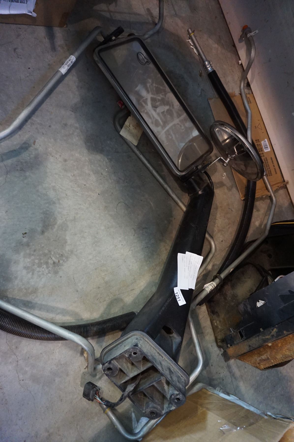 BIG RIGS TRUCK SIDE MIRROR AND BOX OF SEMI-TRAILER AIR CONDITIONING HOSES AND FAN AND SEMI TRAILER BRAKE LIGHT ASSEMBLY