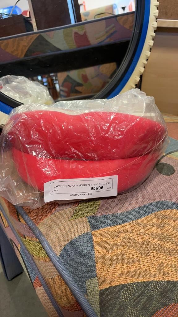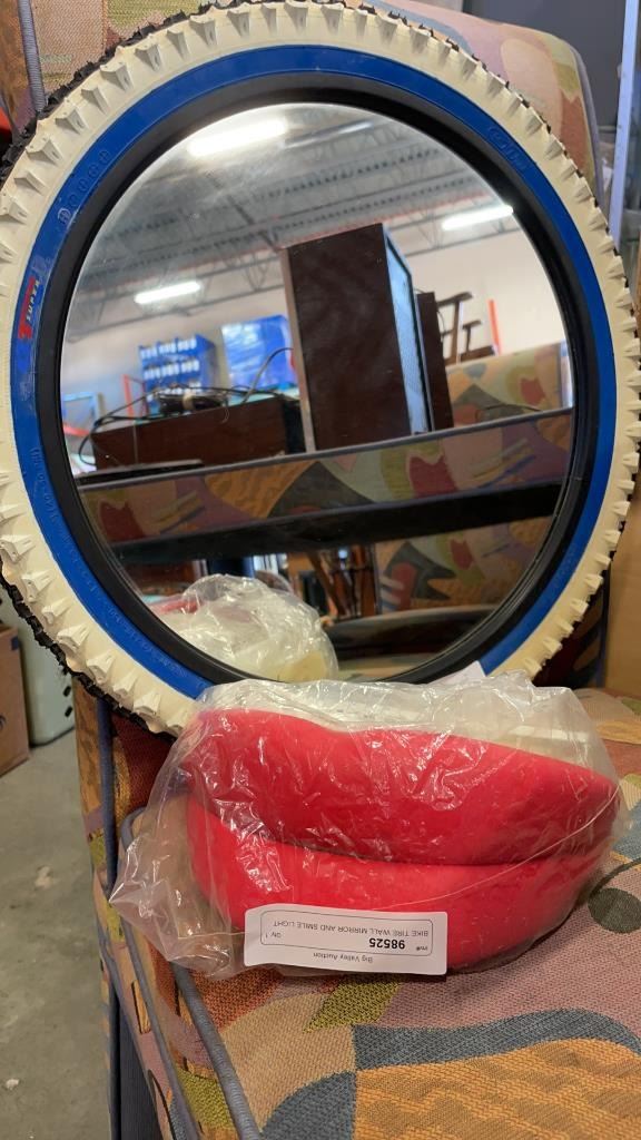 BIKE TIRE WALL MIRROR AND SMILE LIGHT