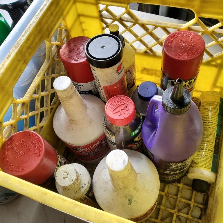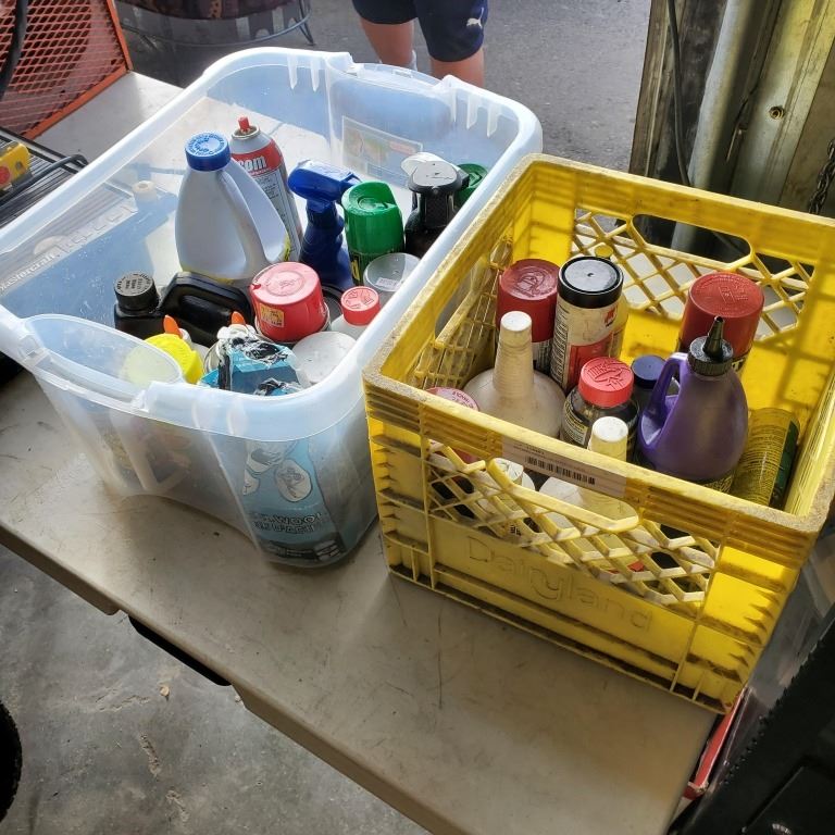 BIN AND CRATE OF SHOP FLUIDS