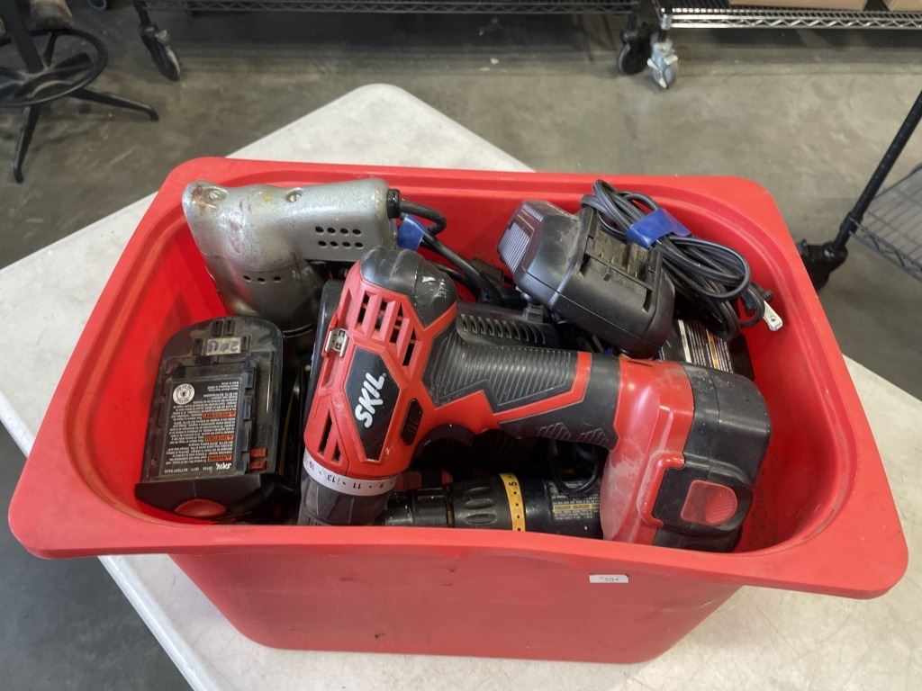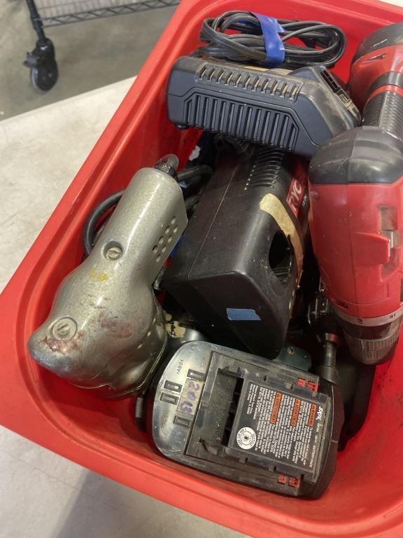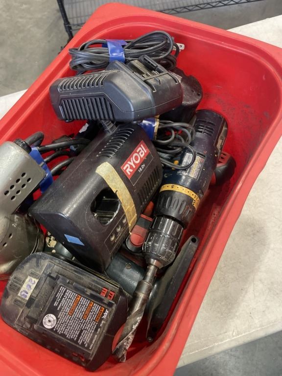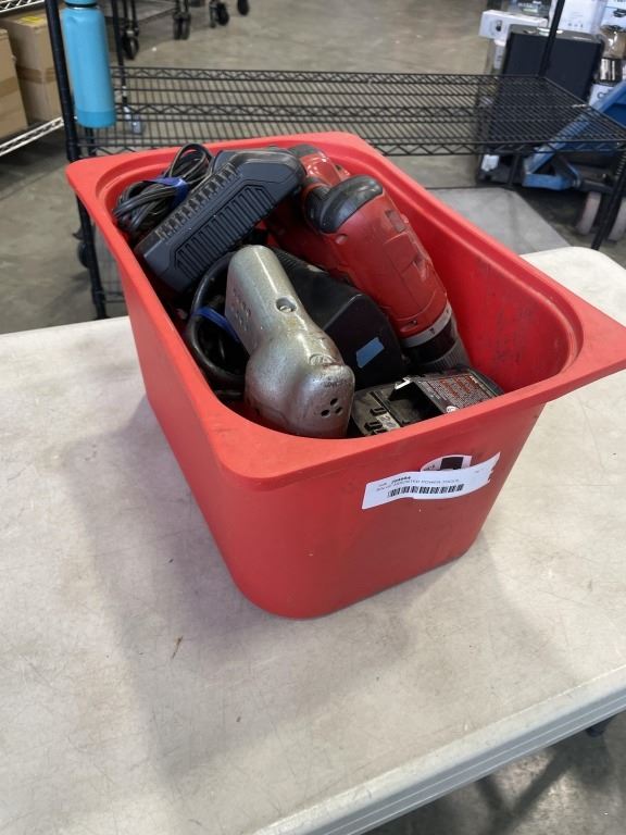 BIN OF ASSORTED POWER TOOLS