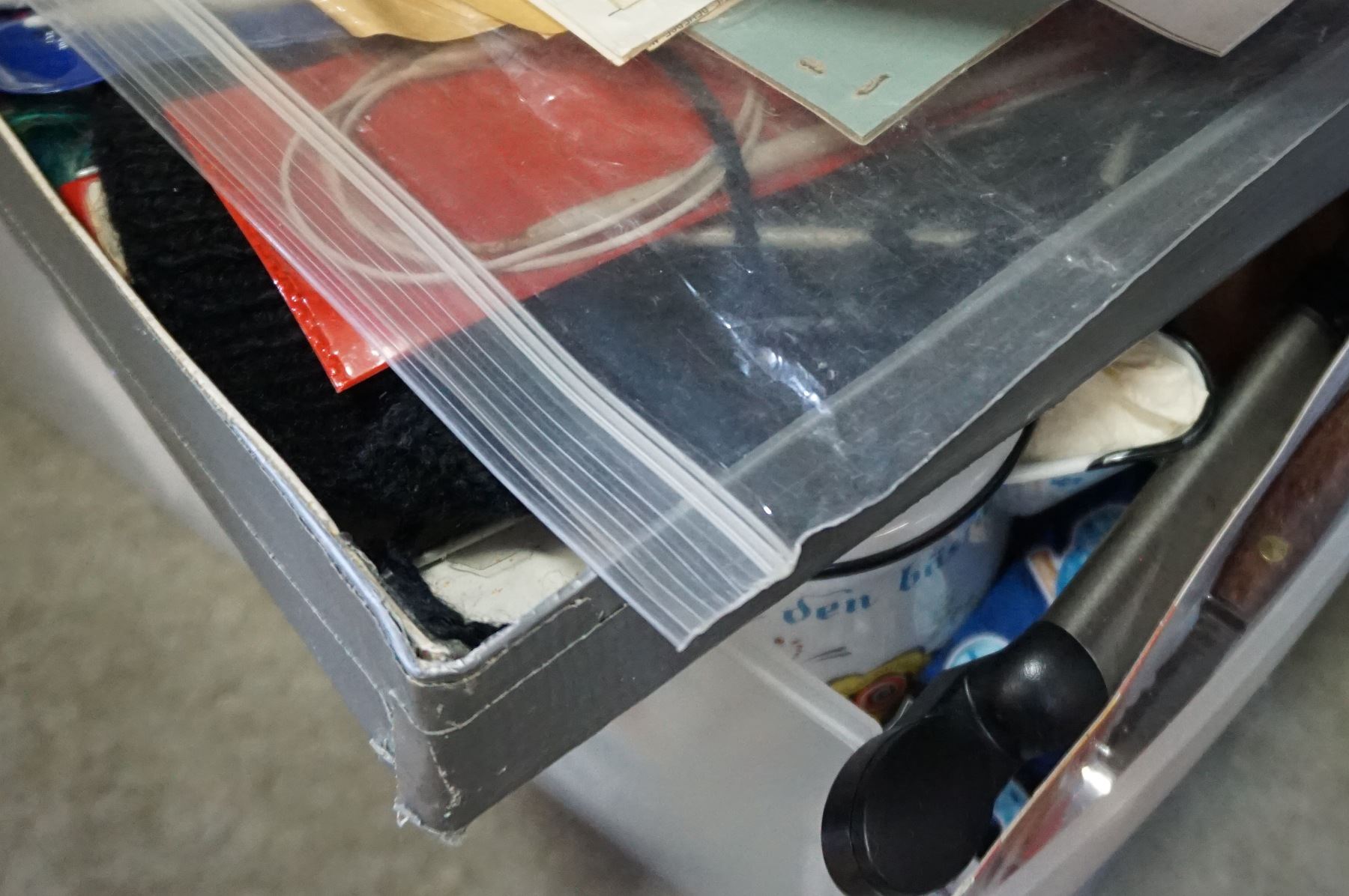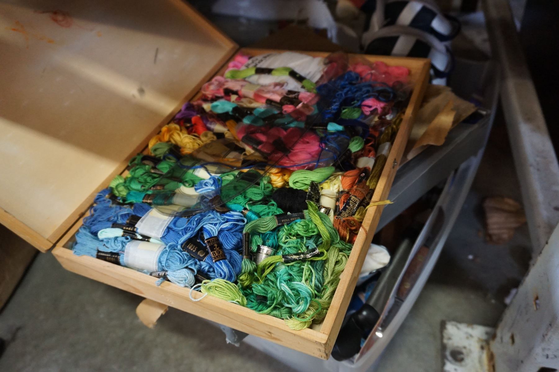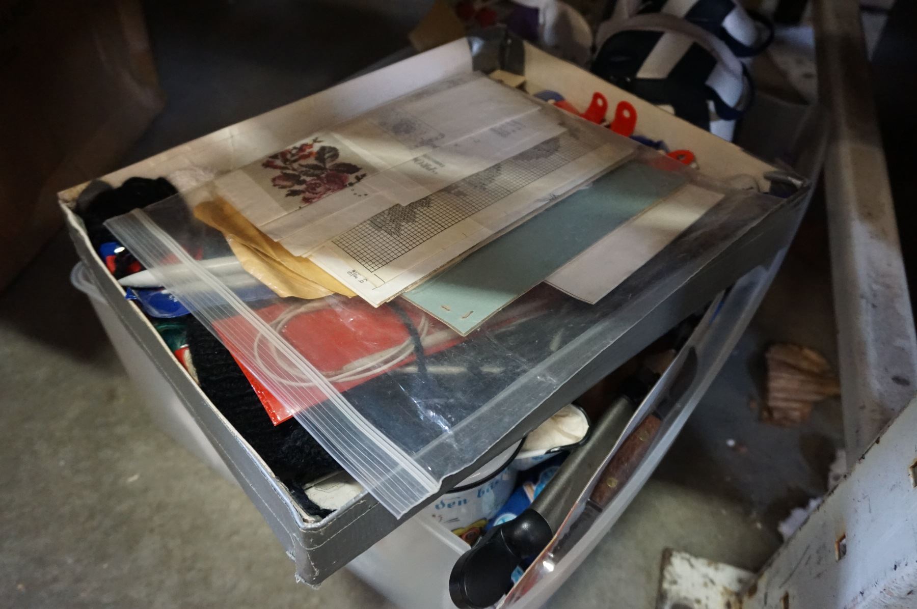 BIN OF ESTATE GOODS AND SEWING SUPPLIES