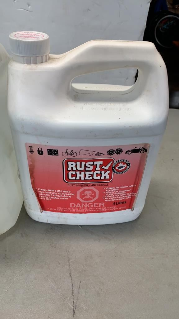 BIN OF HAND TOOLS, SPRAY GUN, DEF FLUID AND RUST CHECK FLUID