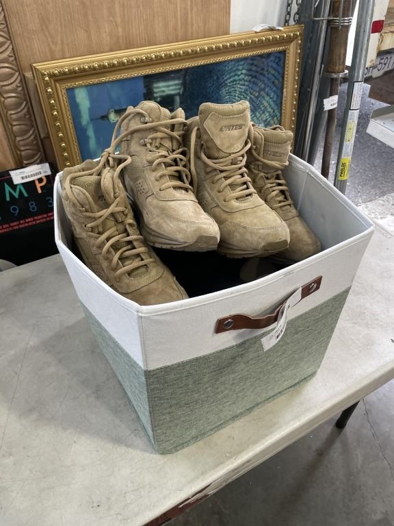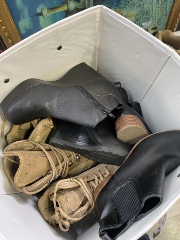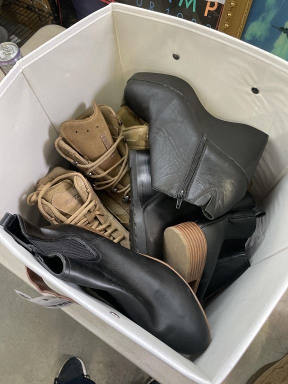 BIN OF NEW SHOES AND BOOTS, ASSORTED SIZE