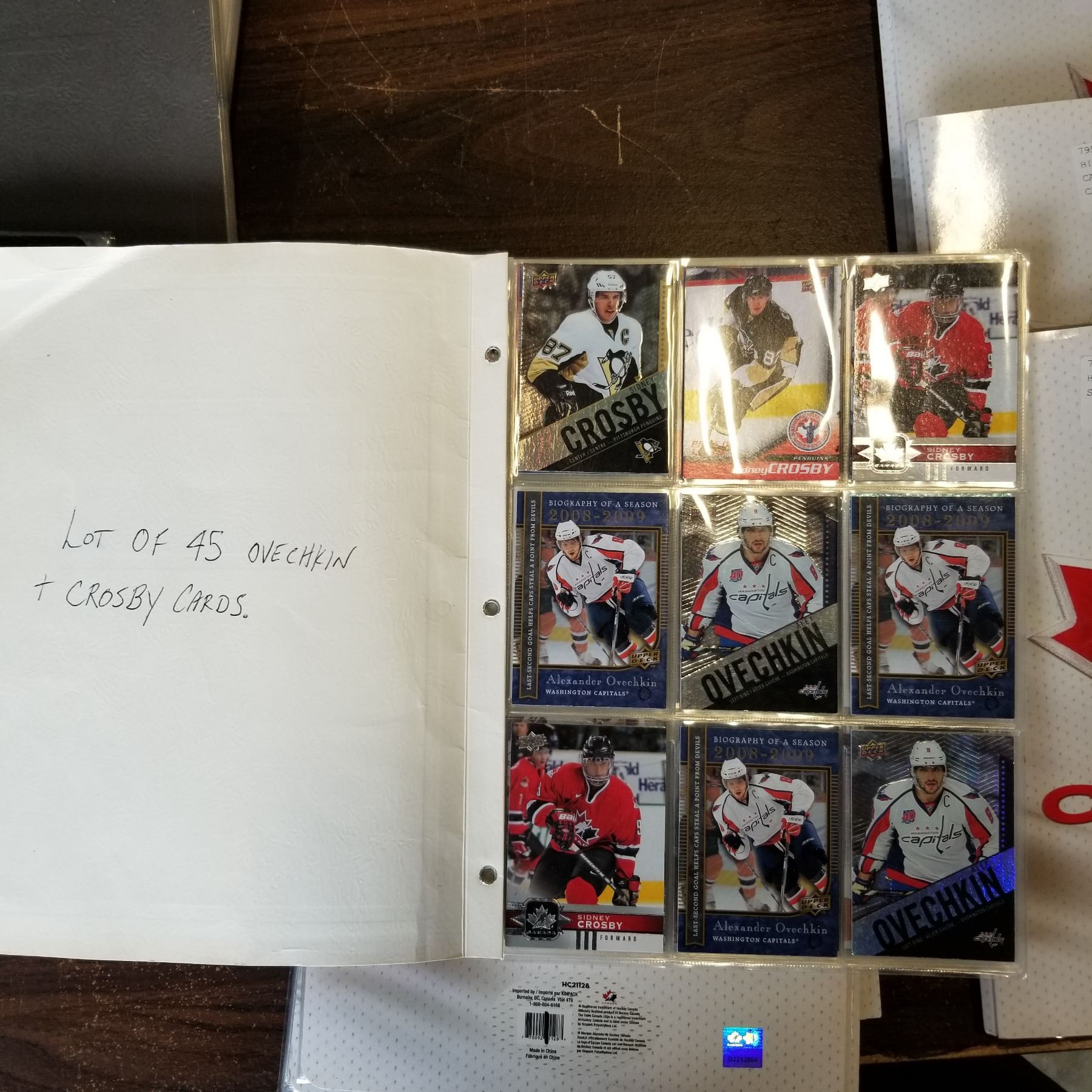 BINDER OF 45 OVECHKIN AND CROSBY HOCKEY CARDS