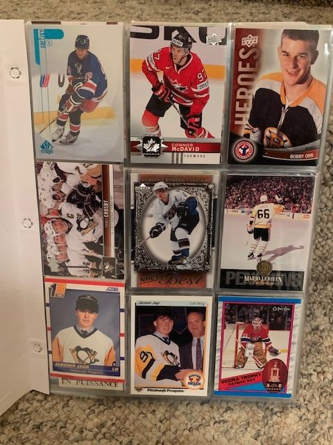 BINDER OF APPROX 200 HOCKEY CARDS, INCLUDES SUPERSTARS AND INSERT SUBSET CARDS, BOOK VALUE APPROX $800-1000