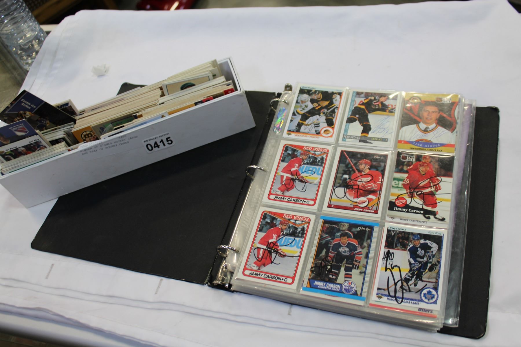 BINDER OF SIGNED HOCKEY CARDS AND TRAY OF HOCKEY CARDS