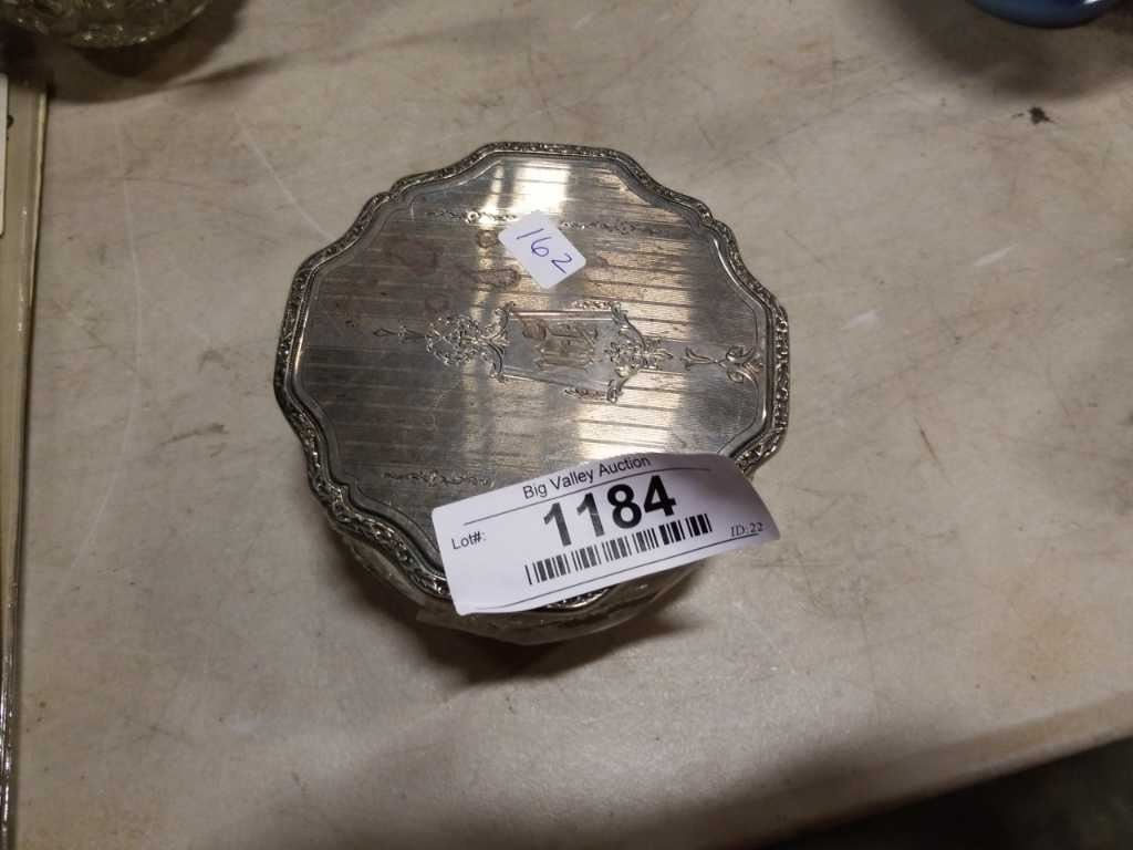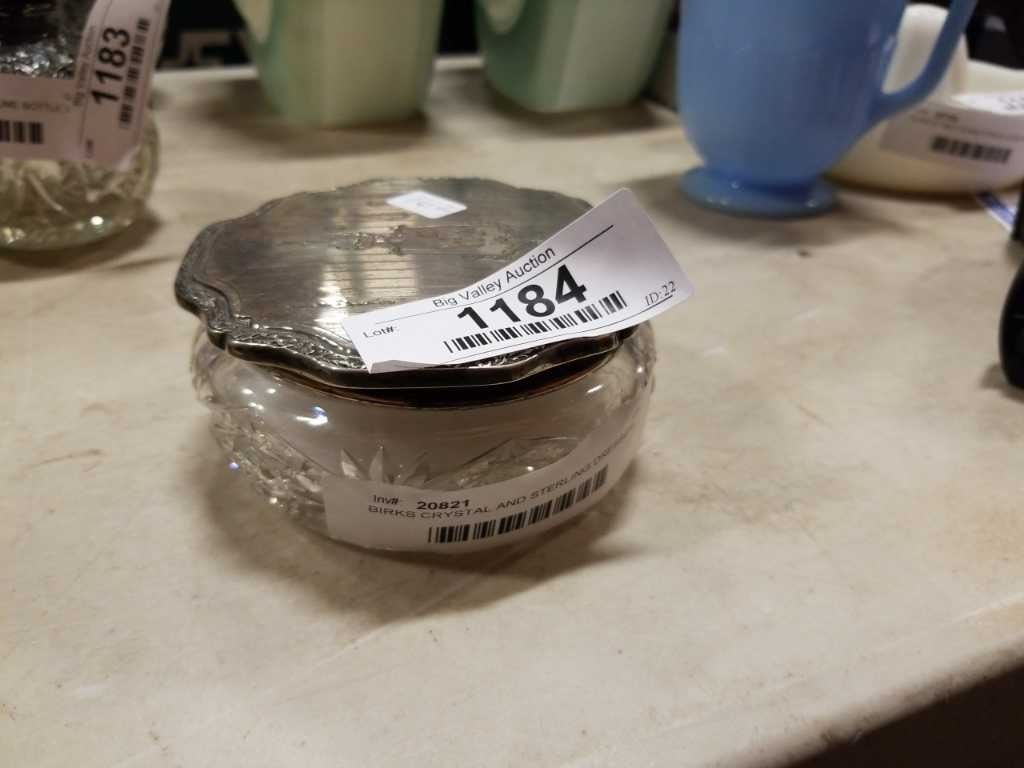 BIRKS CRYSTAL AND STERLING DRESSER JAR W/ POUF
