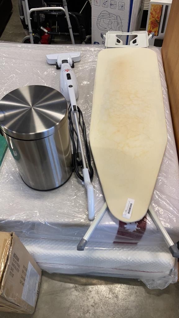 BISSEL FEATHERLITE VACUUM, STAINLESS WASTE BIN AND IRONING BOARD