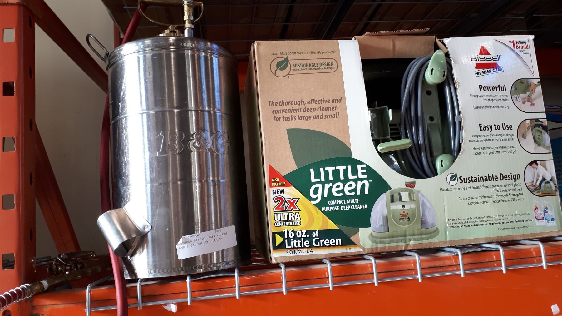 BISSELL LITTLE GREEN MACHINE AND 2 GALLON BUG SPRAYER