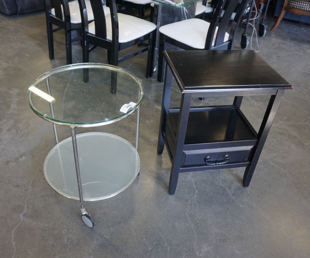 BLACK 1 DRAWER NIGHTSTAND AND 2 TIER ROUND GLASSTOP ENDTABLE