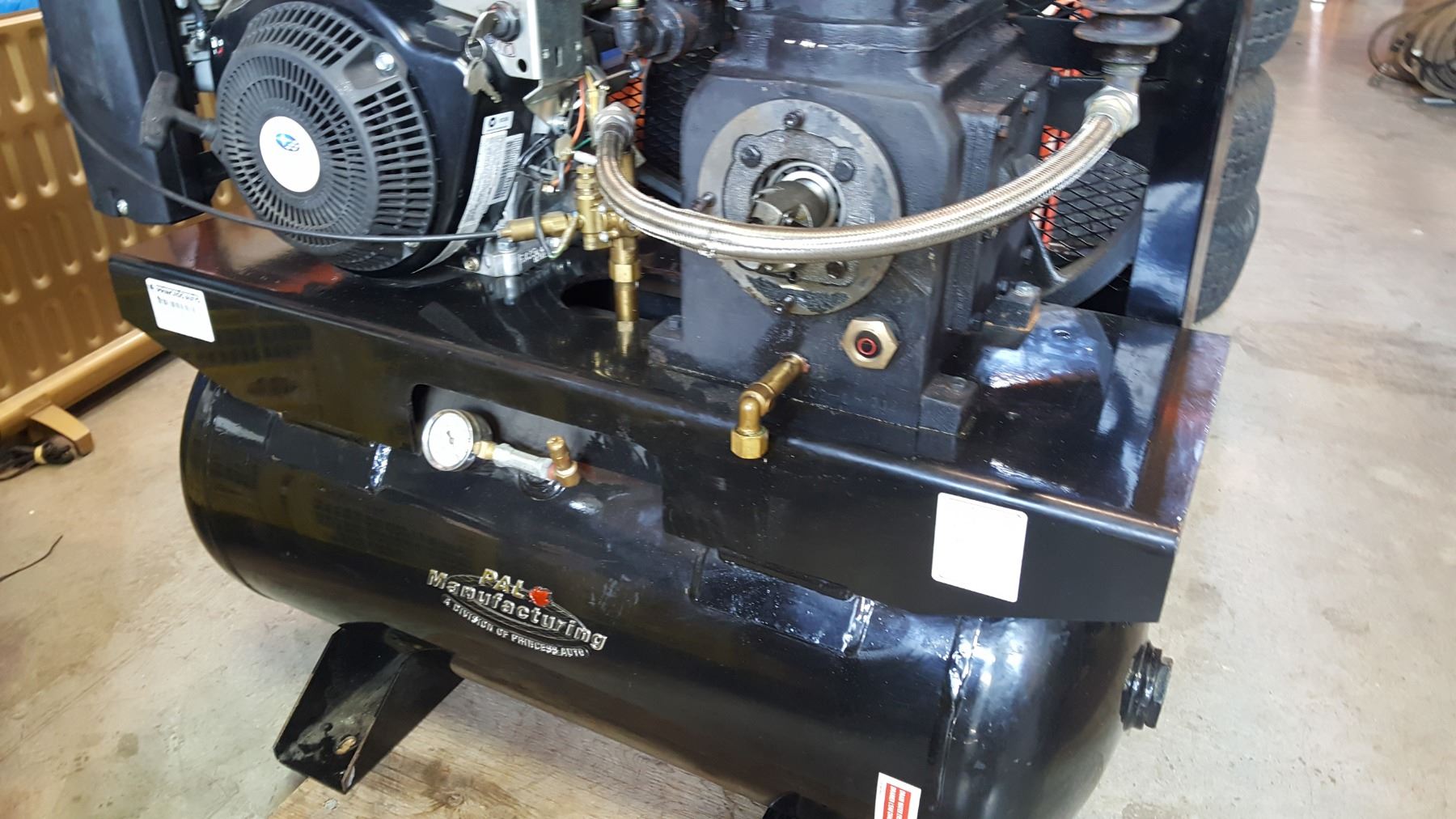 BLACK 30 GALLON12HP TRUCK MOUNT AIR COMPRESSOR WORKING