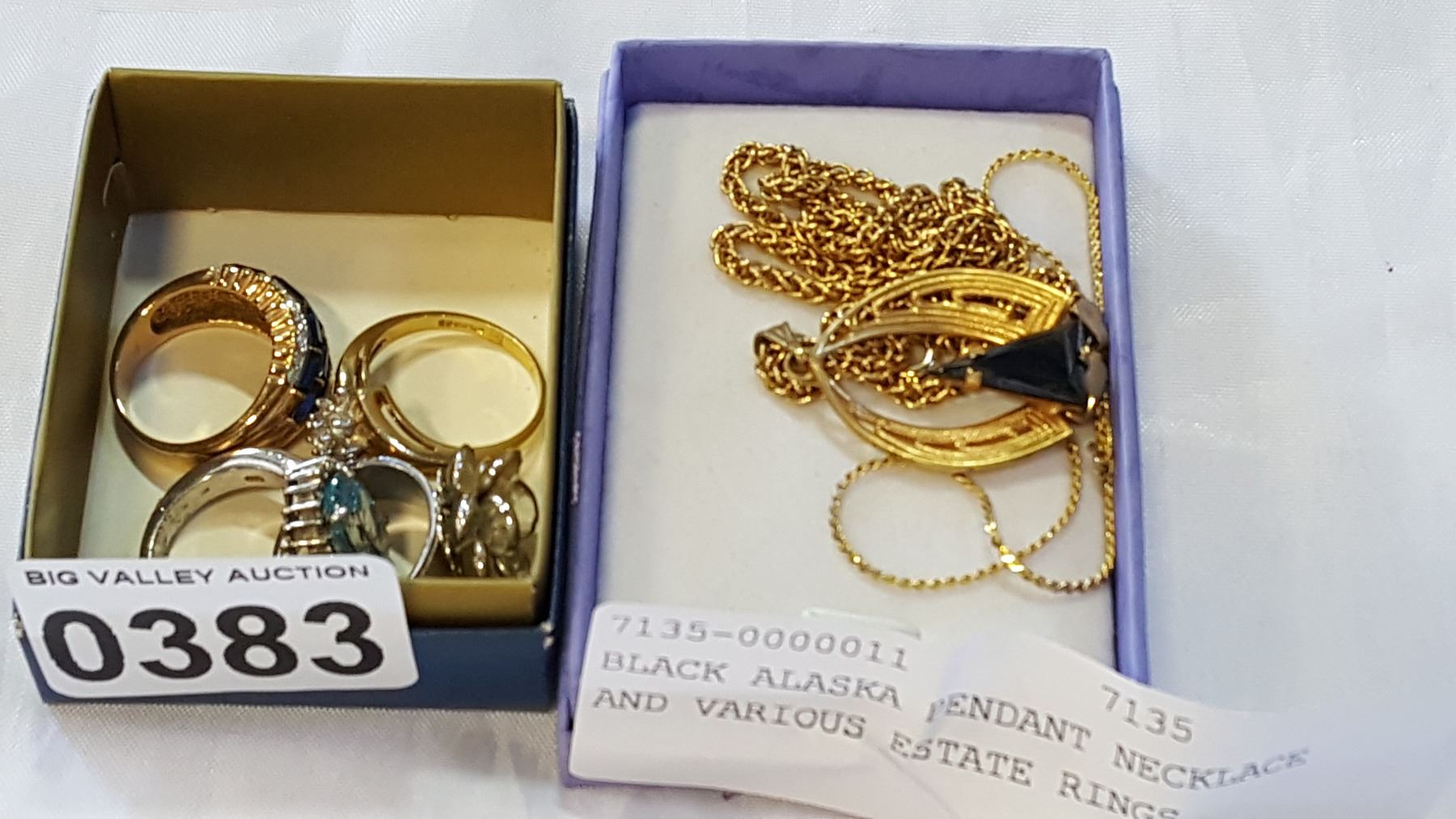 BLACK ALASKA PENDANT NECKLACE AND VARIOUS ESTATE RINGS
