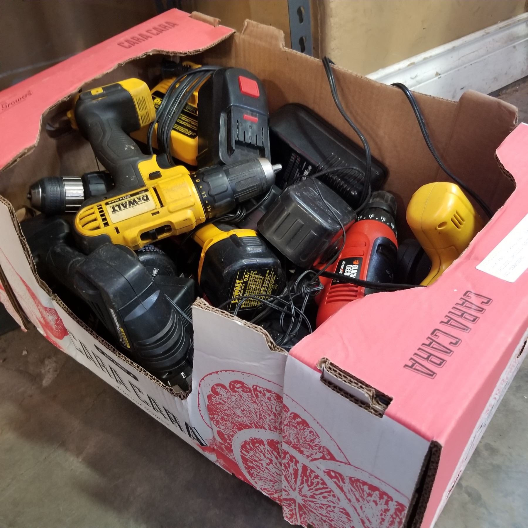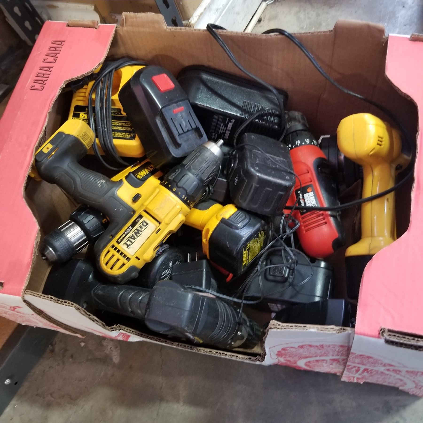 BLACK AND DECKER, AND DE WALT CORDLESS DRILLS, BATTERIES, AND CHARGERS
