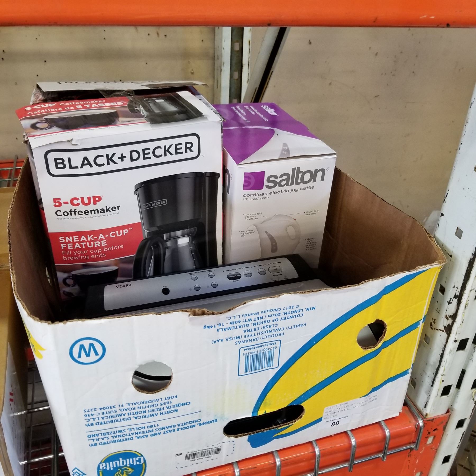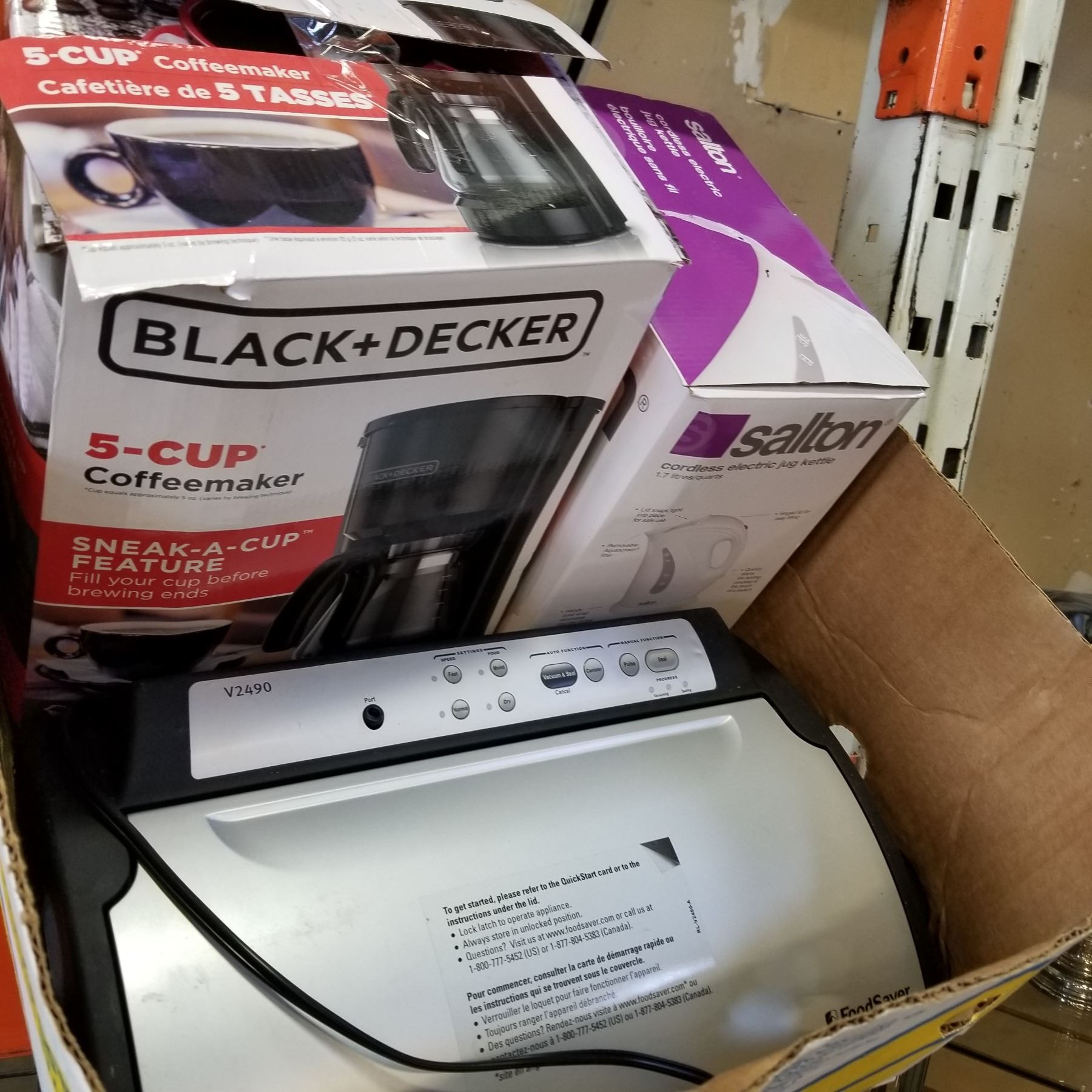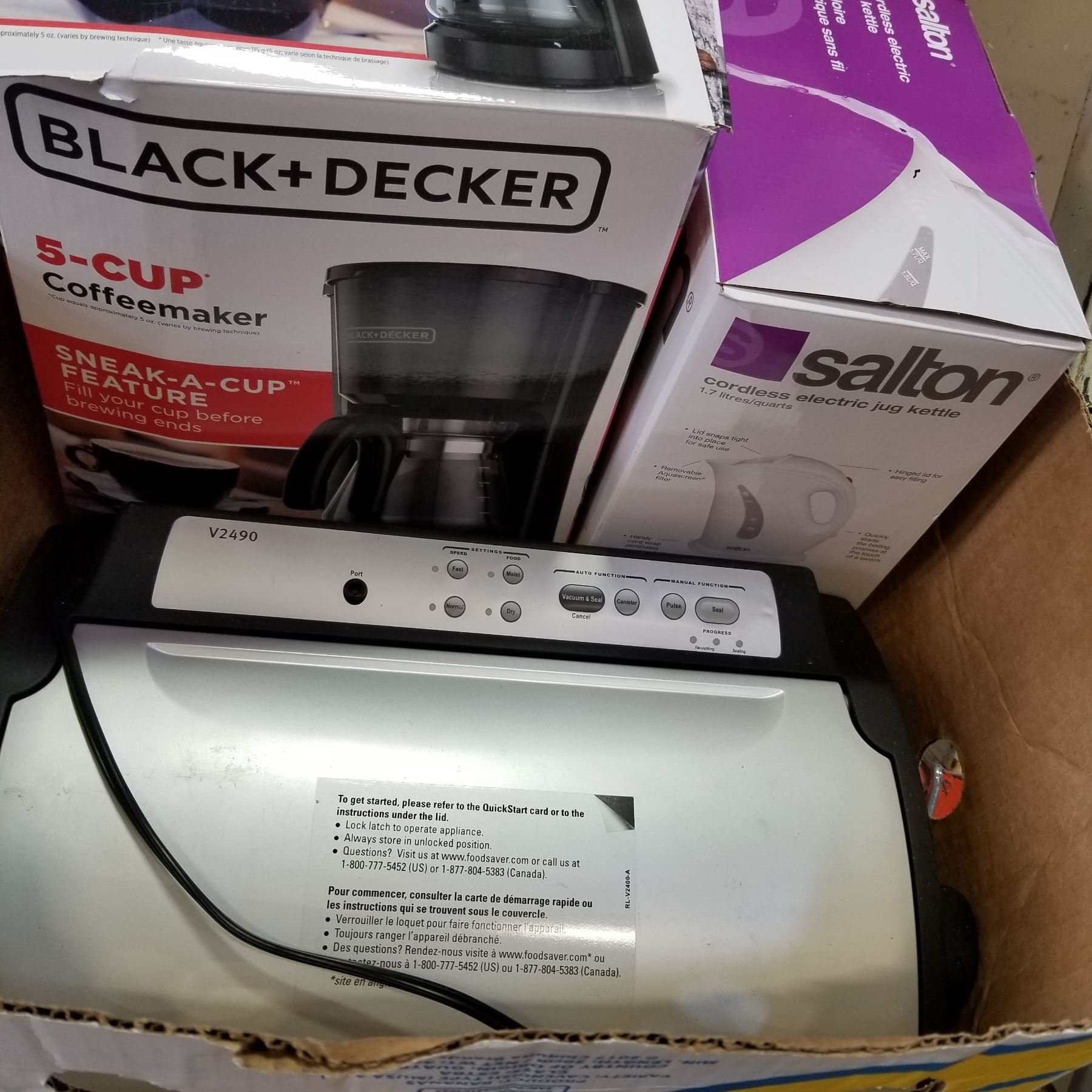 BLACK AND DECKER COFFEE MAKER, SALTON KETTLE, AND FOOD SAVER MACHINE