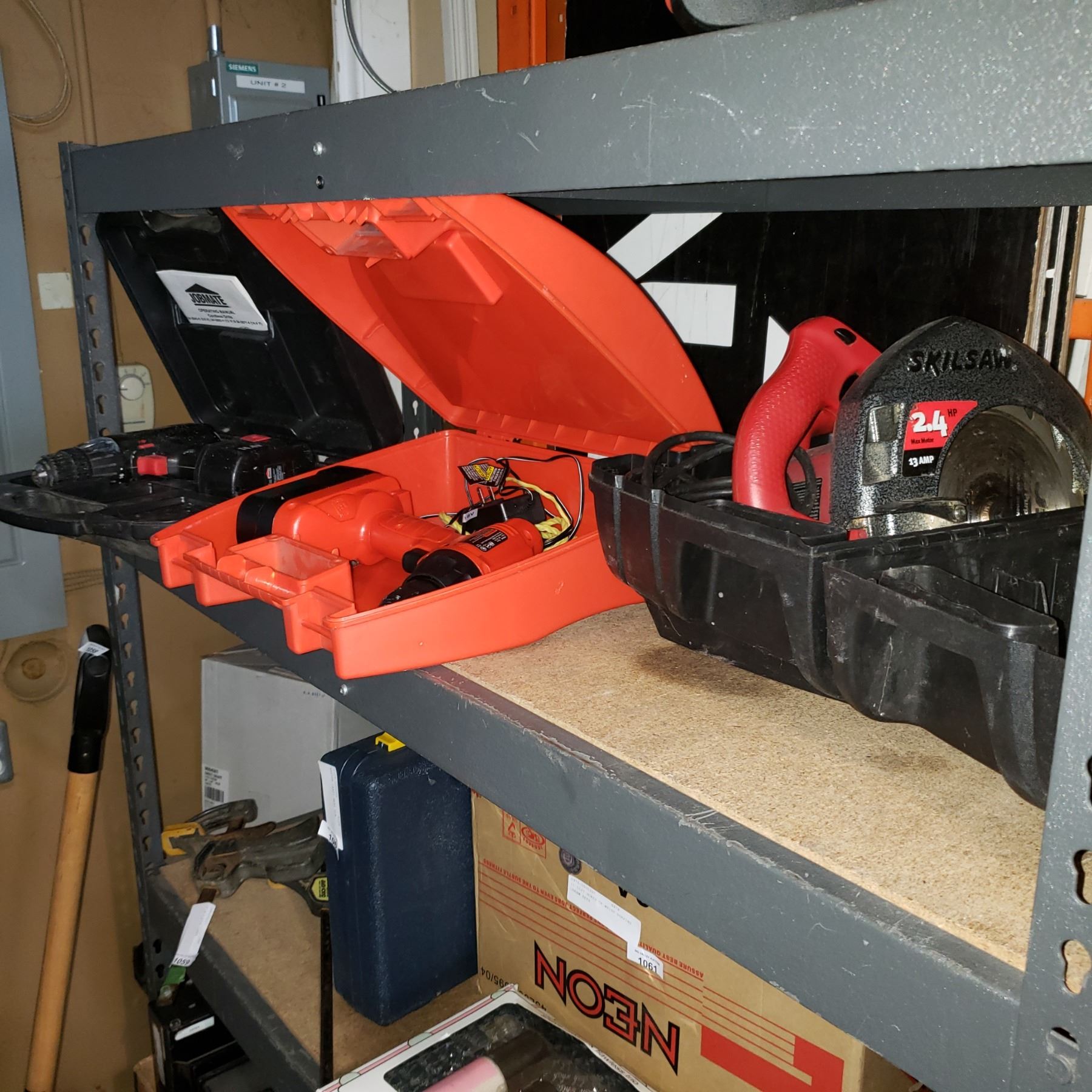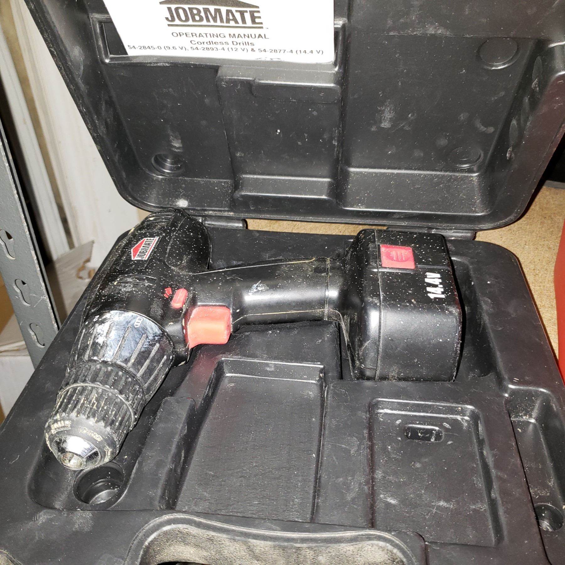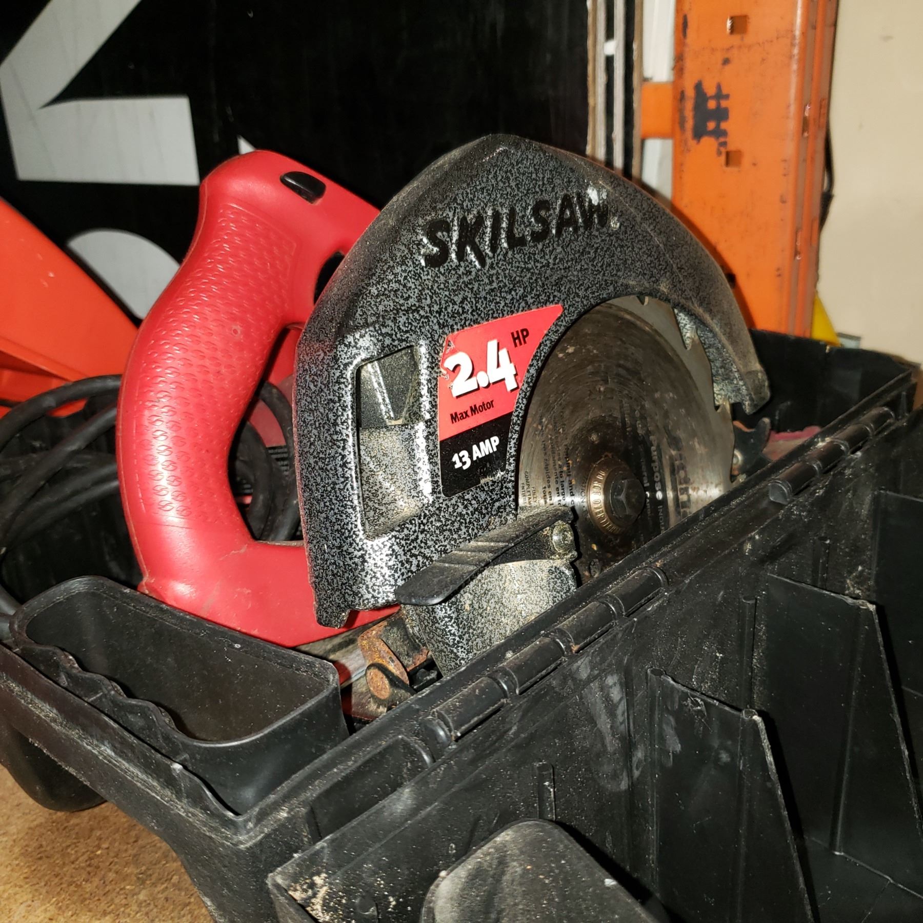 BLACK AND DECKER CORDLESS DRILL, JOBMATE CORDLESS DRILL, AND SKIL CIRCLE SAW