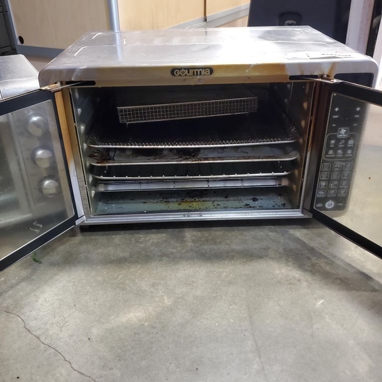 BLACK AND DECKER EXTRA WIDE TOASTER OVEN WITH GOURMIA DOUBLE DOOR AIR FRYER BOTH TESTED AND WORKING NEEDS CLEAN