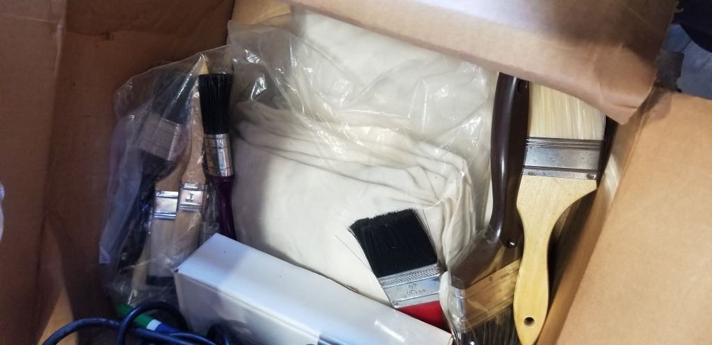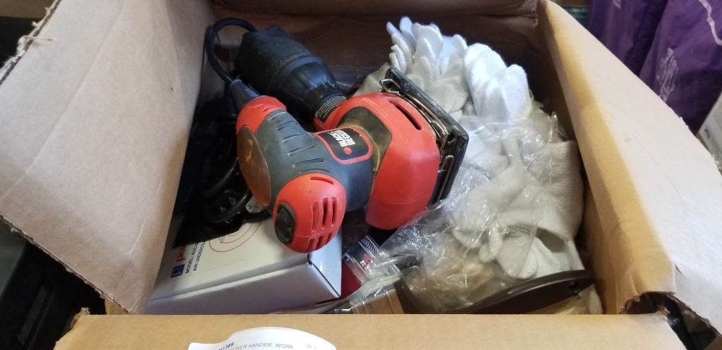 BLACK AND DECKER SANDER, WORK GLOVES AND PAINTING SUPPLIES