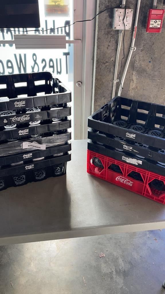 BLACK AND RED PLASTIC COCO COLA TRAYS