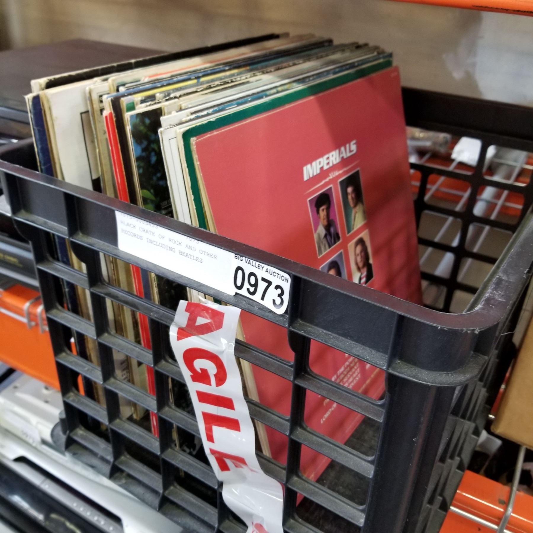 BLACK CRATE OF ROCK AND OTHER RECORDS INCLUDING BEATLES