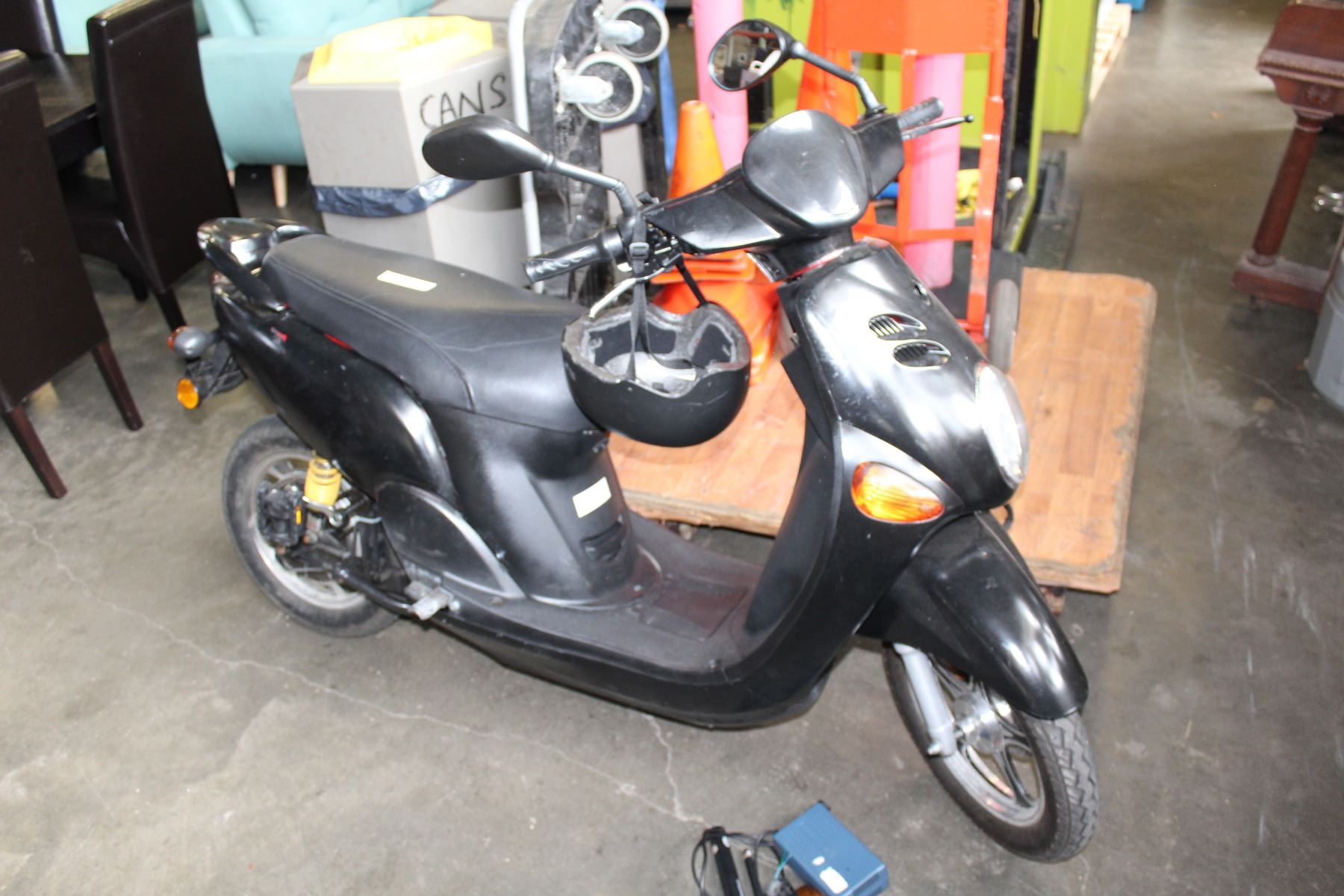 BLACK ELECTRIC SCOOTER WITH CHARGER KEYS AND HELMET
