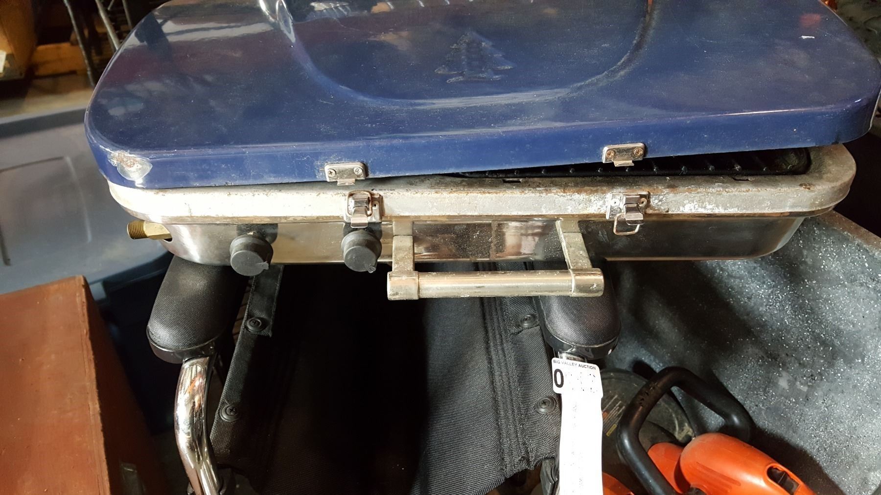 BLACK FOLDING WHEEL CHAIR AND WOOD CAMP STOVE