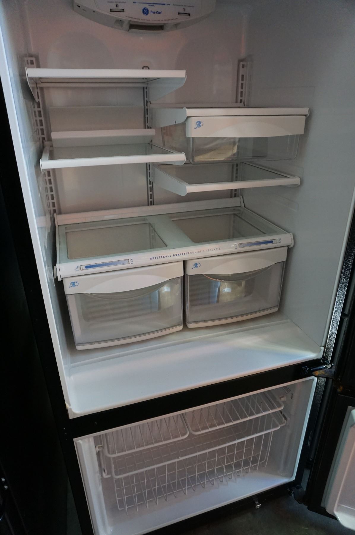 BLACK GE TRUE COOL FRIDGE WITH BOTTOM FREEZER TESTED AND WORKING GUARANTEED