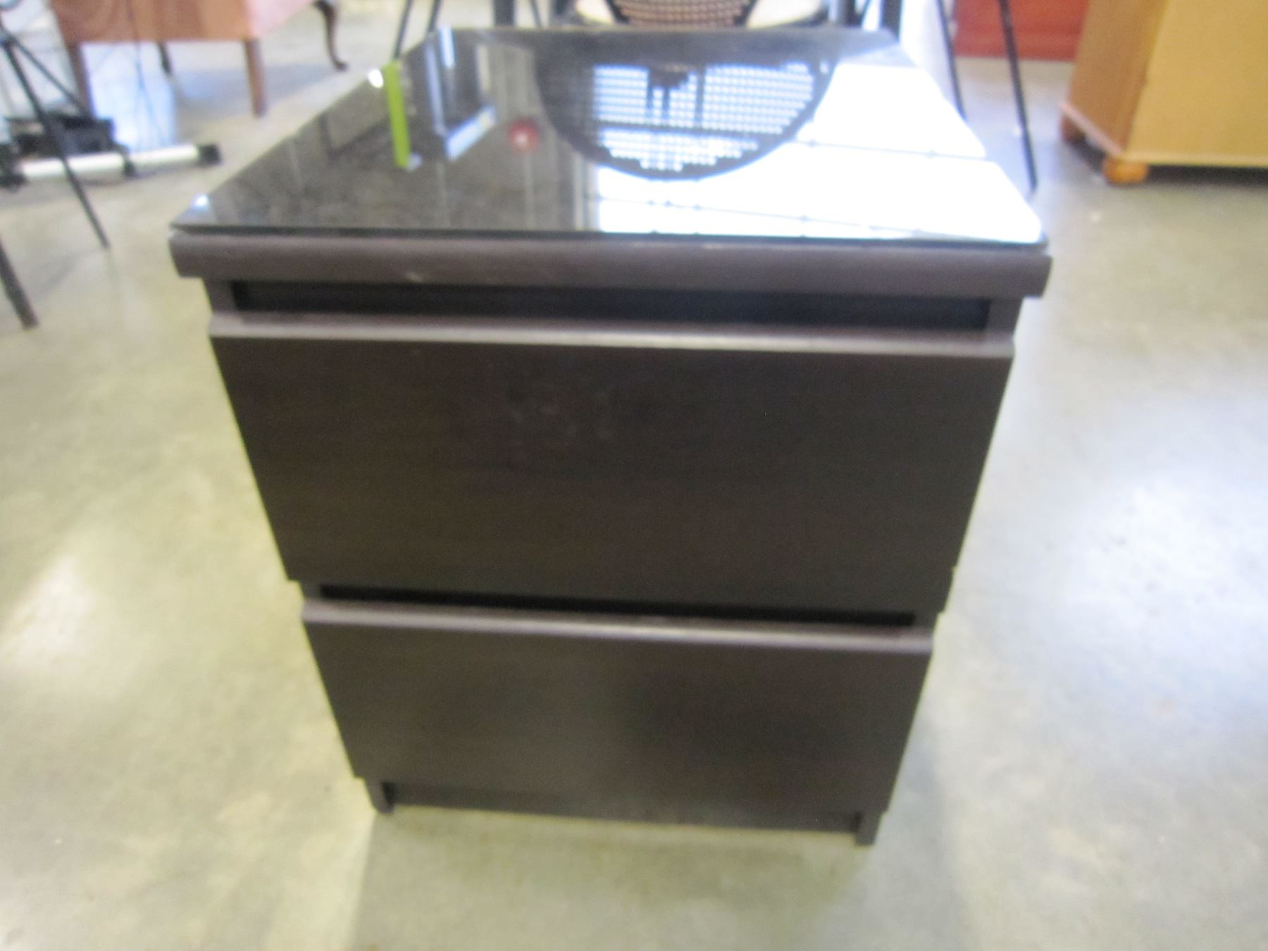 BLACK GLASSTOP 2 DRAWER NIGHTSTAND